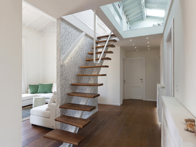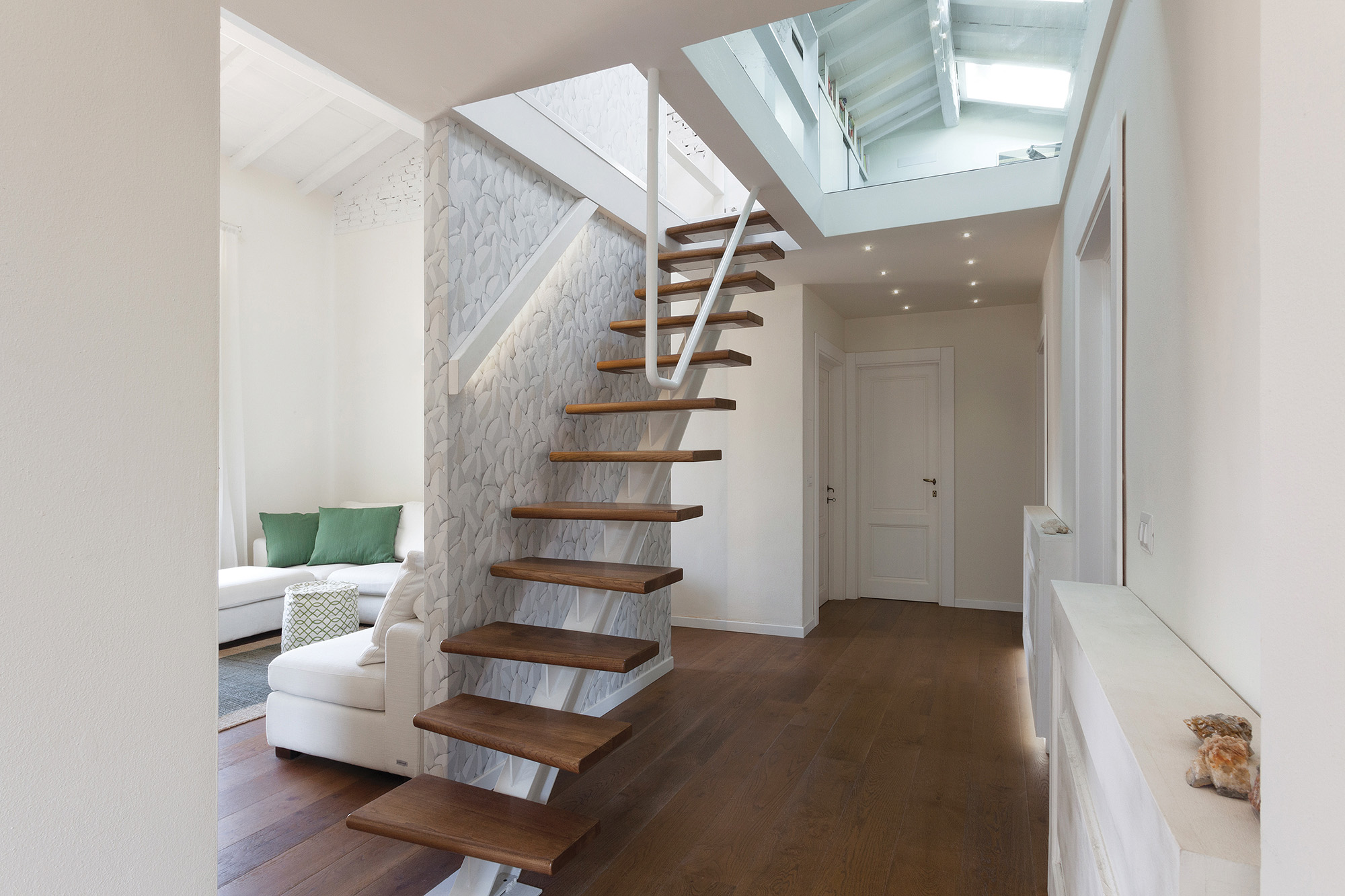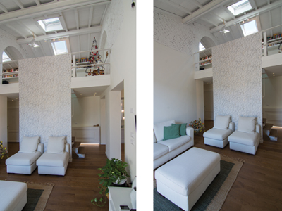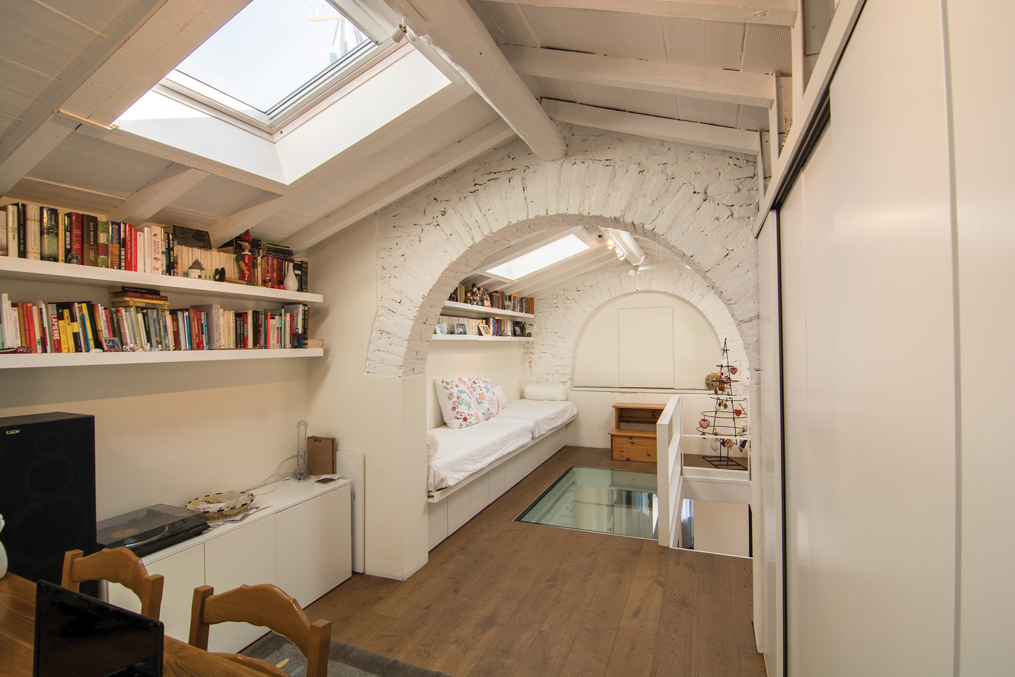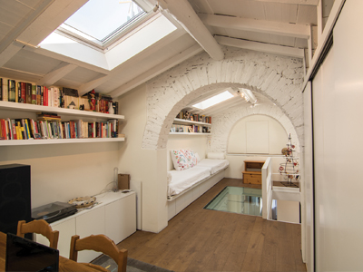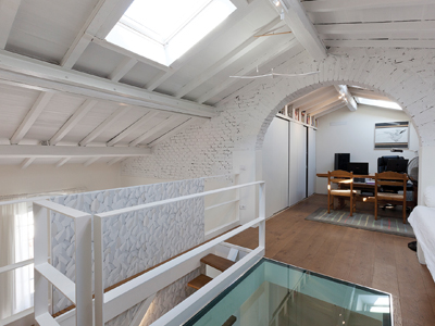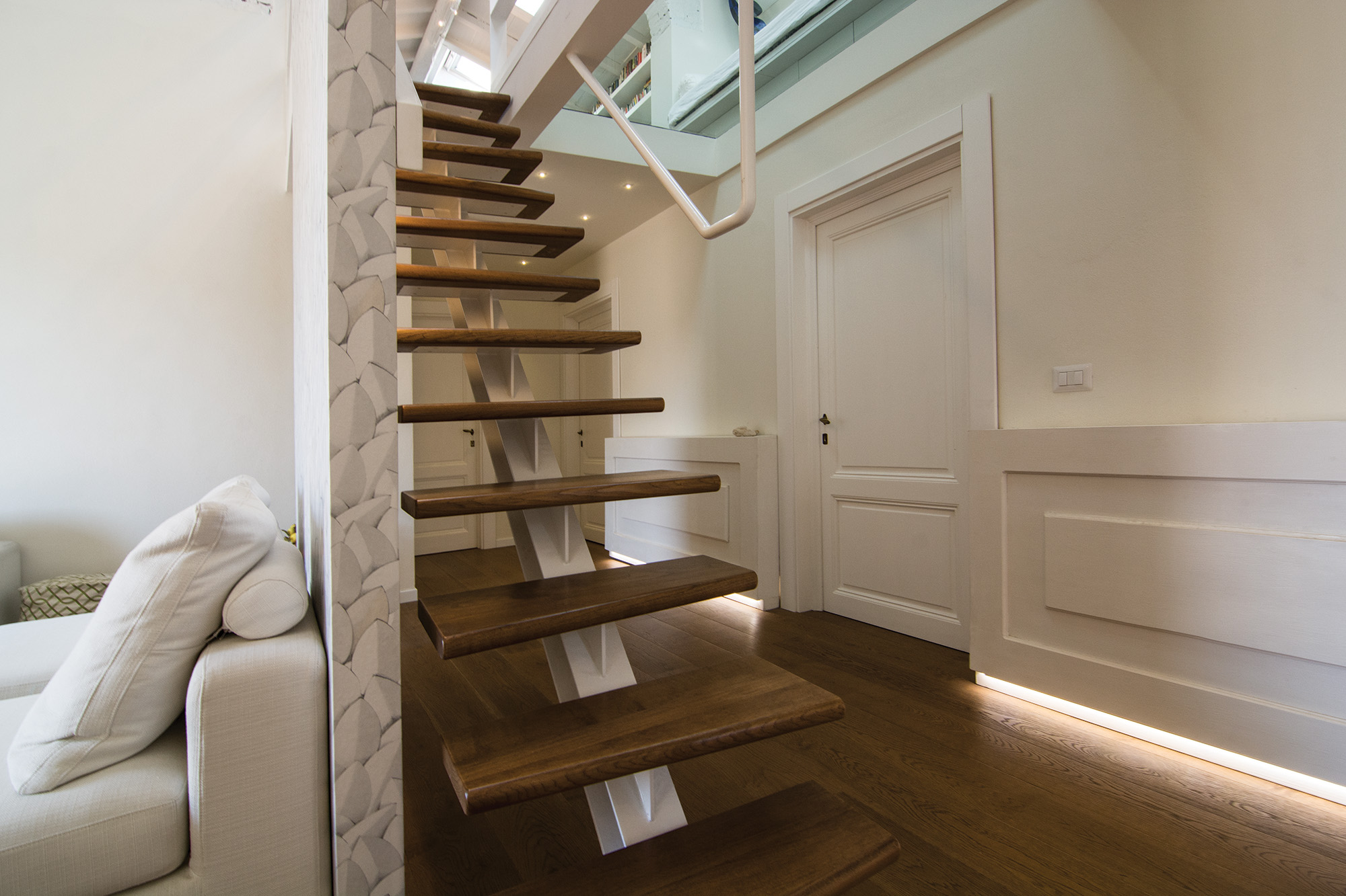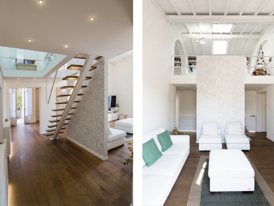 The living area on the first floor has been enlarged thanks to the abatement of the false ceiling and the idea of leaving exposed the beams and the tables as well as the old bricks and white paint was immediately welcomed by the buyers but immediately found a host of opponents who do not hesitate to say their opinion is not required. Given the final result both me and my customers would redo this choice a thousand and a thousand times again!
