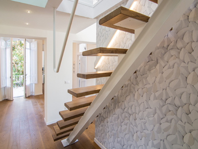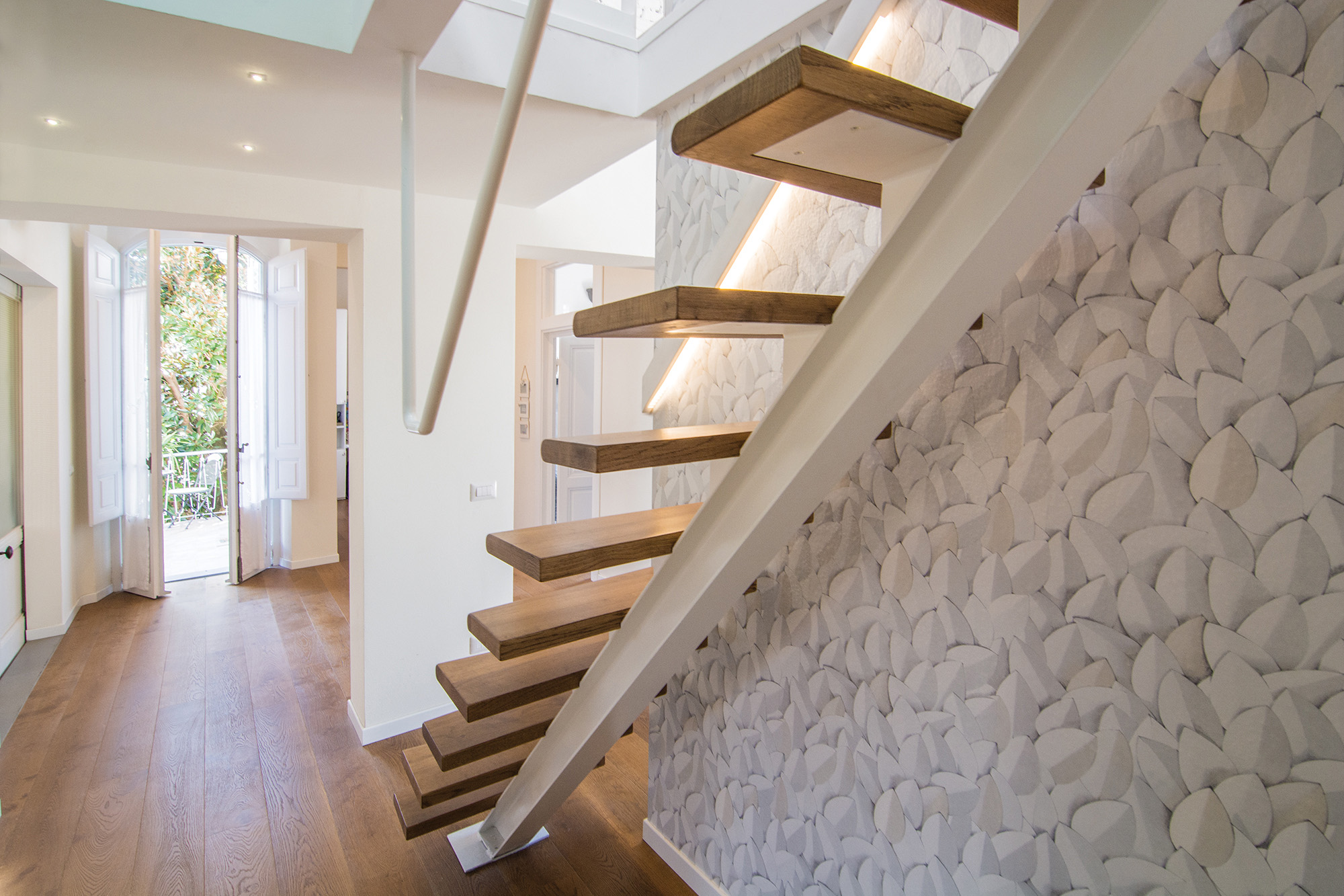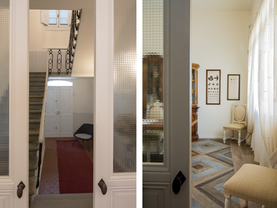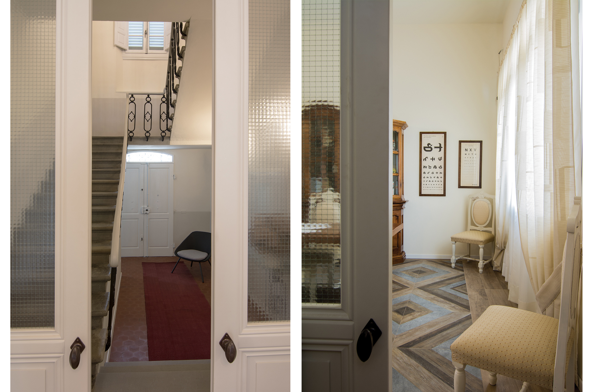 In order not to distort the charm of an old villa of this type, I advised my clients to keep restoring the internal and external fixtures and some coatings such as grits and terracotta hexagons on the ground floor and the stairwell. Even the stone staircase has been maintained as far as possible: the handrail has been restored and repainted while the steps have been restored and replaced only on the ground floor, floor where the staircase itself has been enlarged to make the entrance more airy.