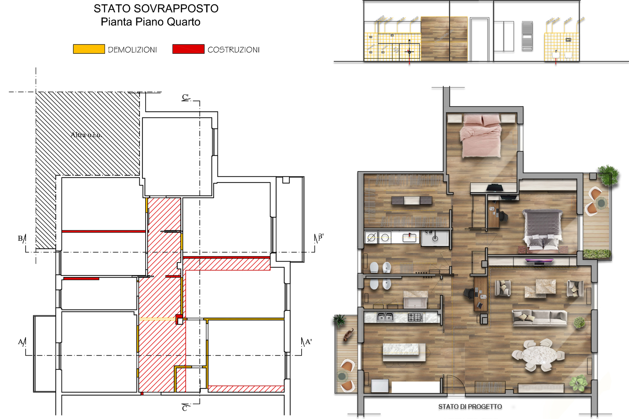 Tra Firenze ed Arezzo due giovani Committenti in cerca della loro prima abitazione. Li abbiamo aiutati a scegliere tra alcune ipotesi: scartato un terratetto che necessitava interventi di consolidamento strutturale e modifiche murarie importanti ci siamo orientati su un appartamento anni ’70 situato al piano attico di un palazzo munito di ascensore.