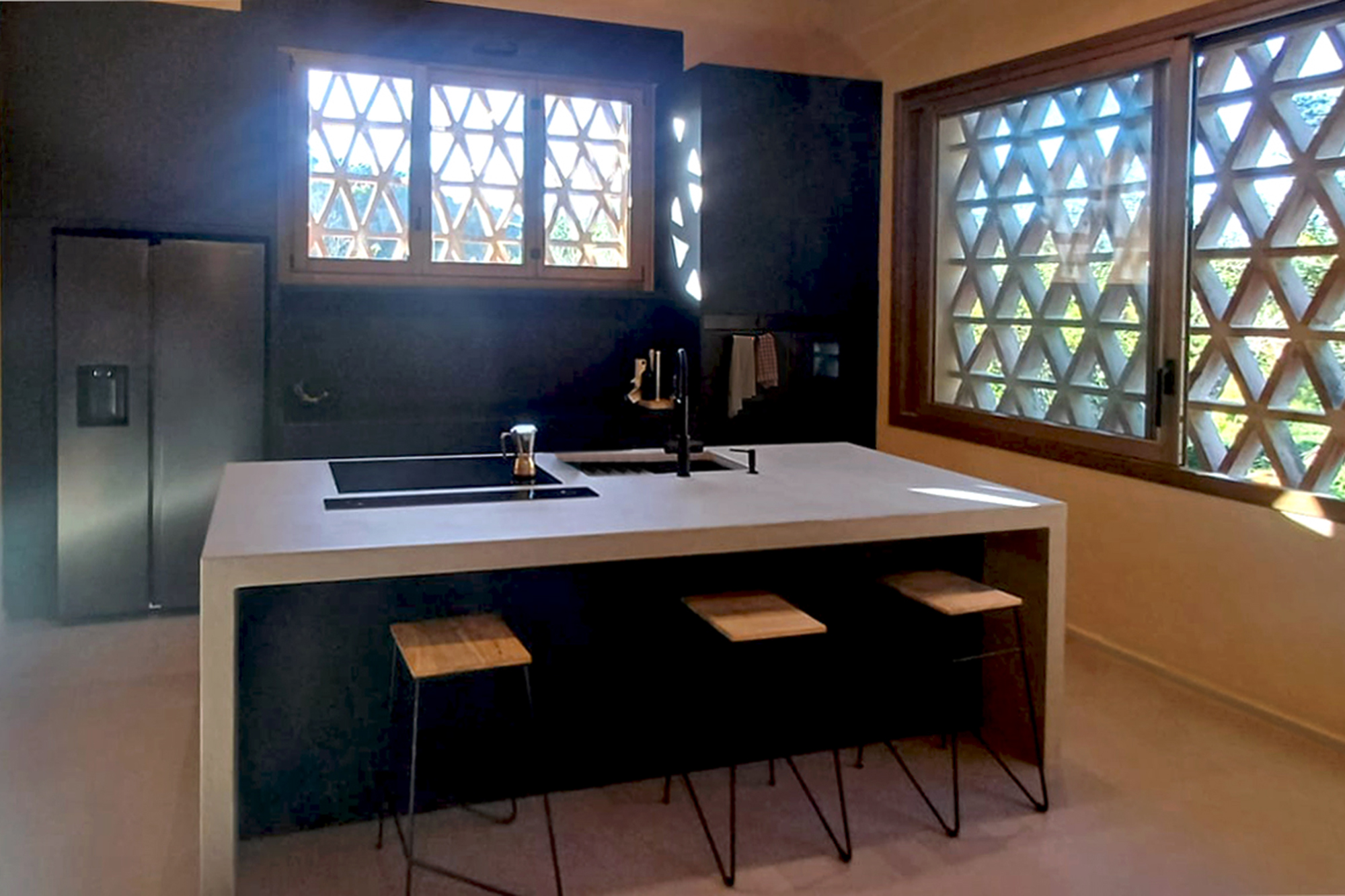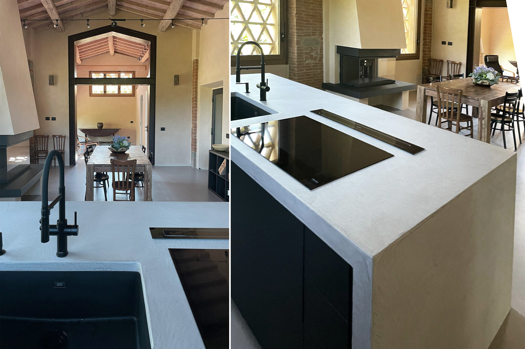 4-l’isola della cucina completamente in resina con lavabo integrato
