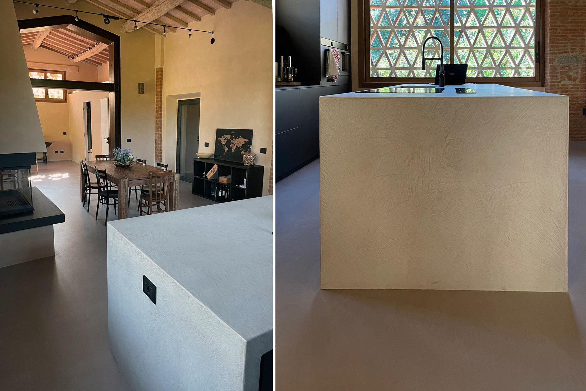 Materiali utilizzati a pavimento: tutta resina cementizia spatolata