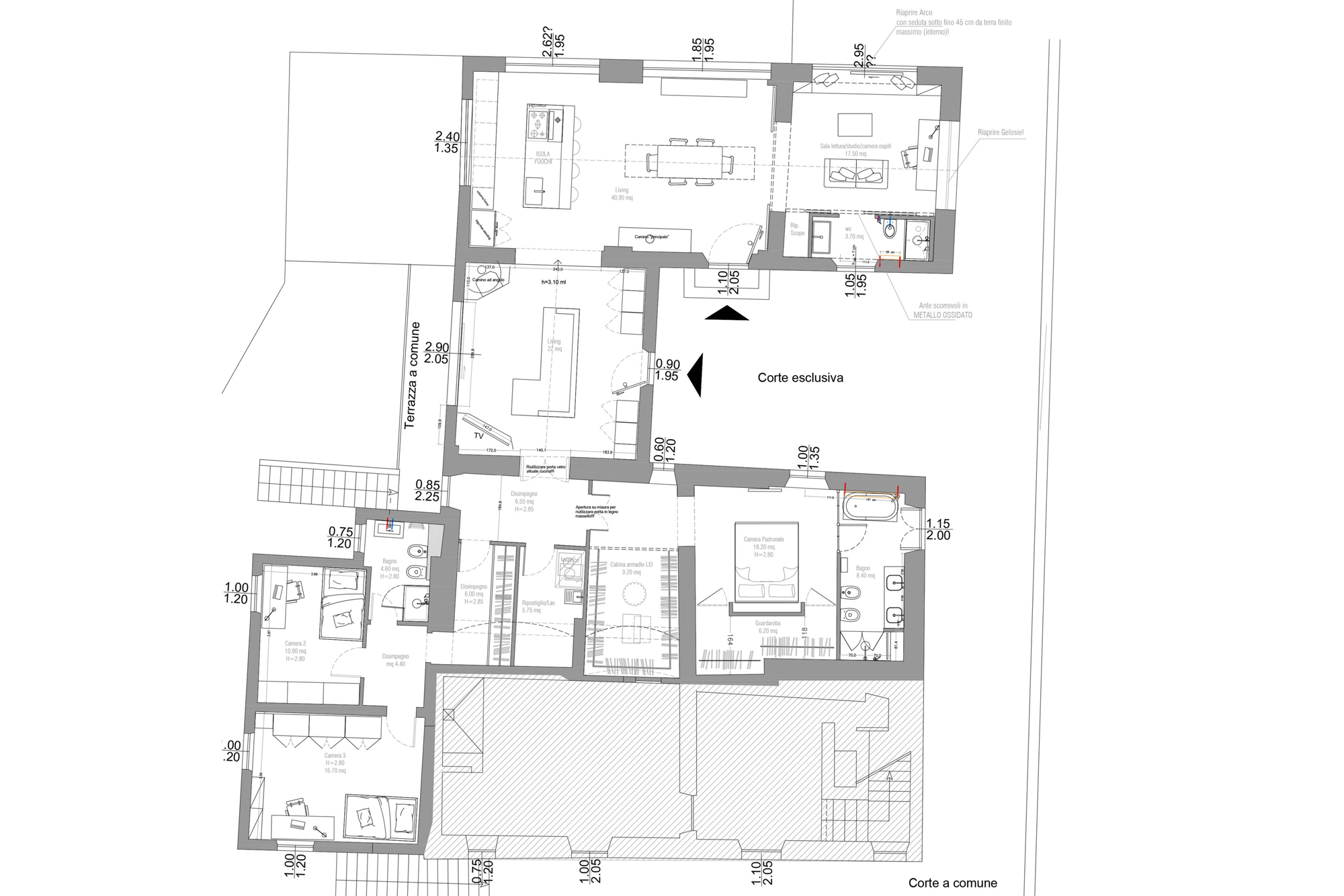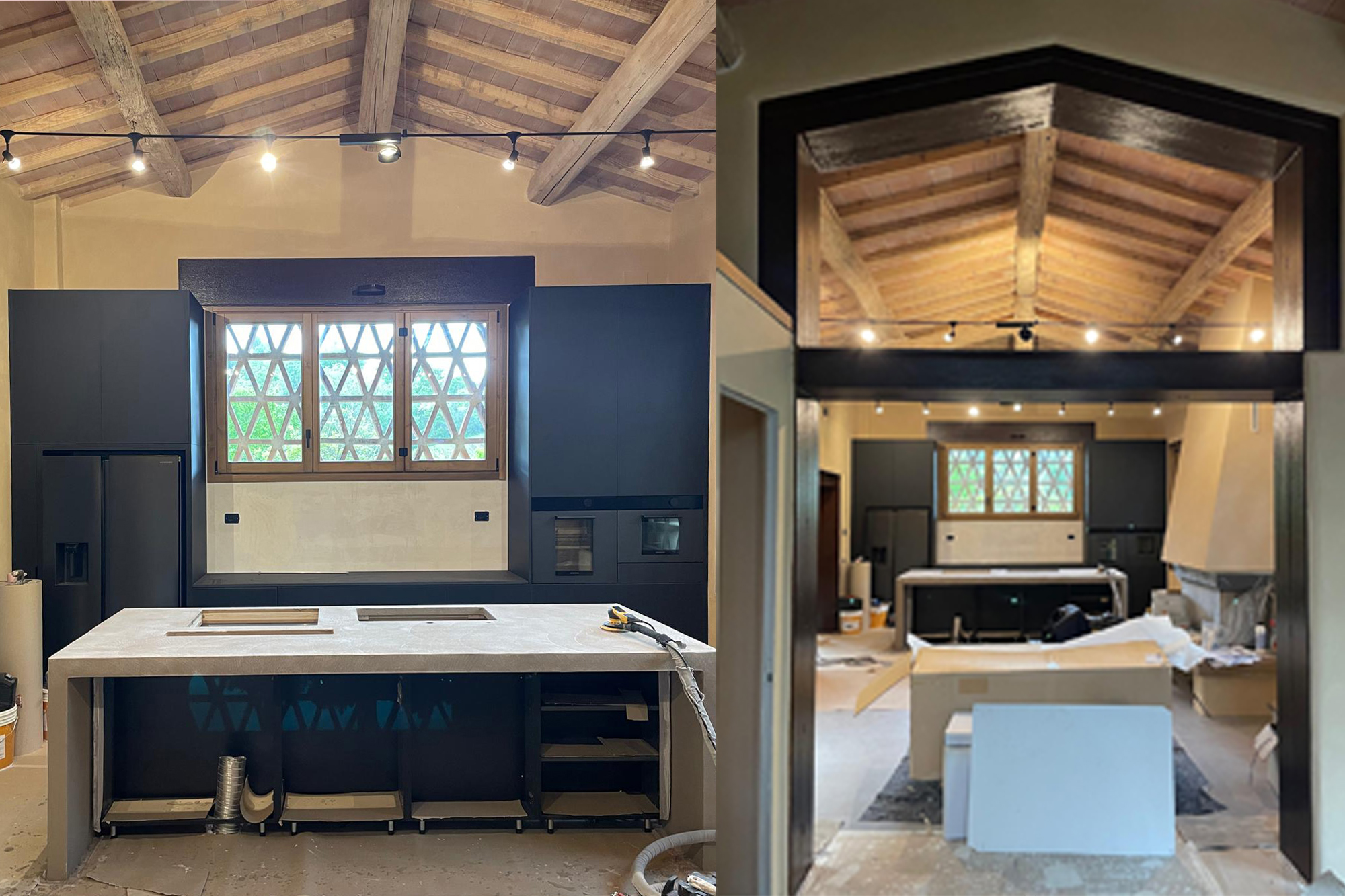 Un progetto molto complesso a causa delle tante richieste della Committenza che ha richiesto innumerevoli revisioni dell’architettonico. Come si vede dalla foto alcune stanze non sono ancora terminate ma si capisce comunque la coerenza del progetto e la linearità della visione complessiva.