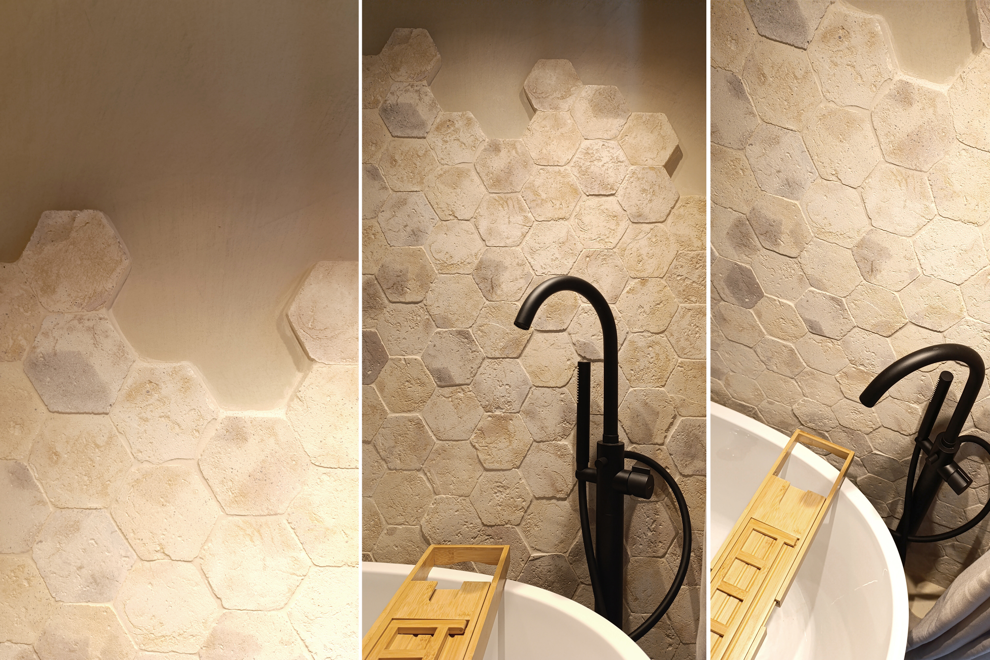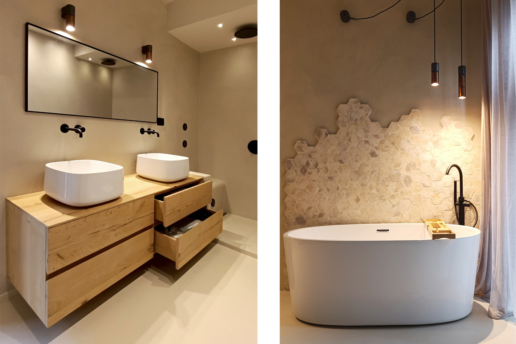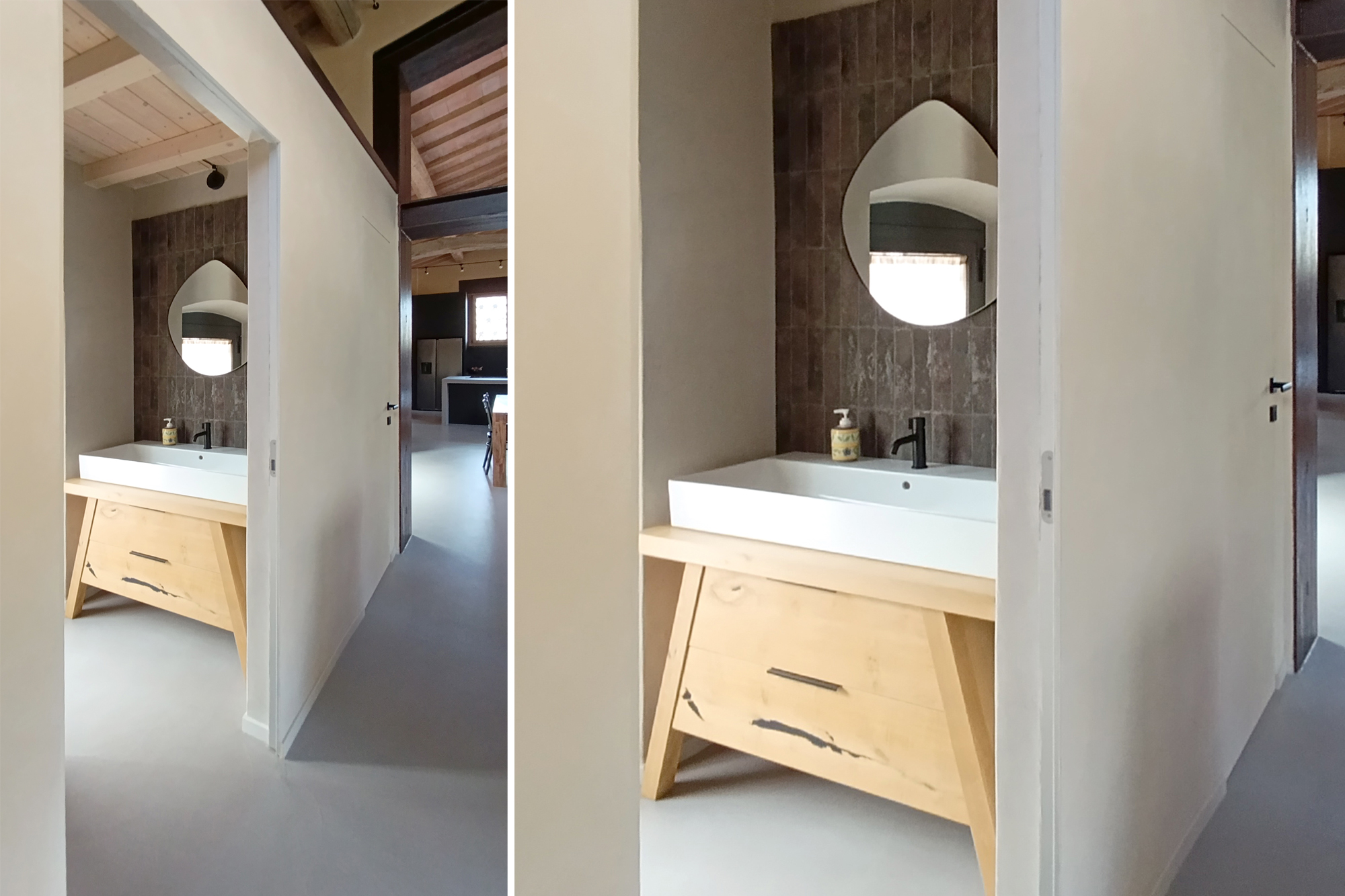 1-Viva le superifici continue! Tutti i rivestimenti sono in resina ad eccezione di piccole porzioni di parete nei bagni