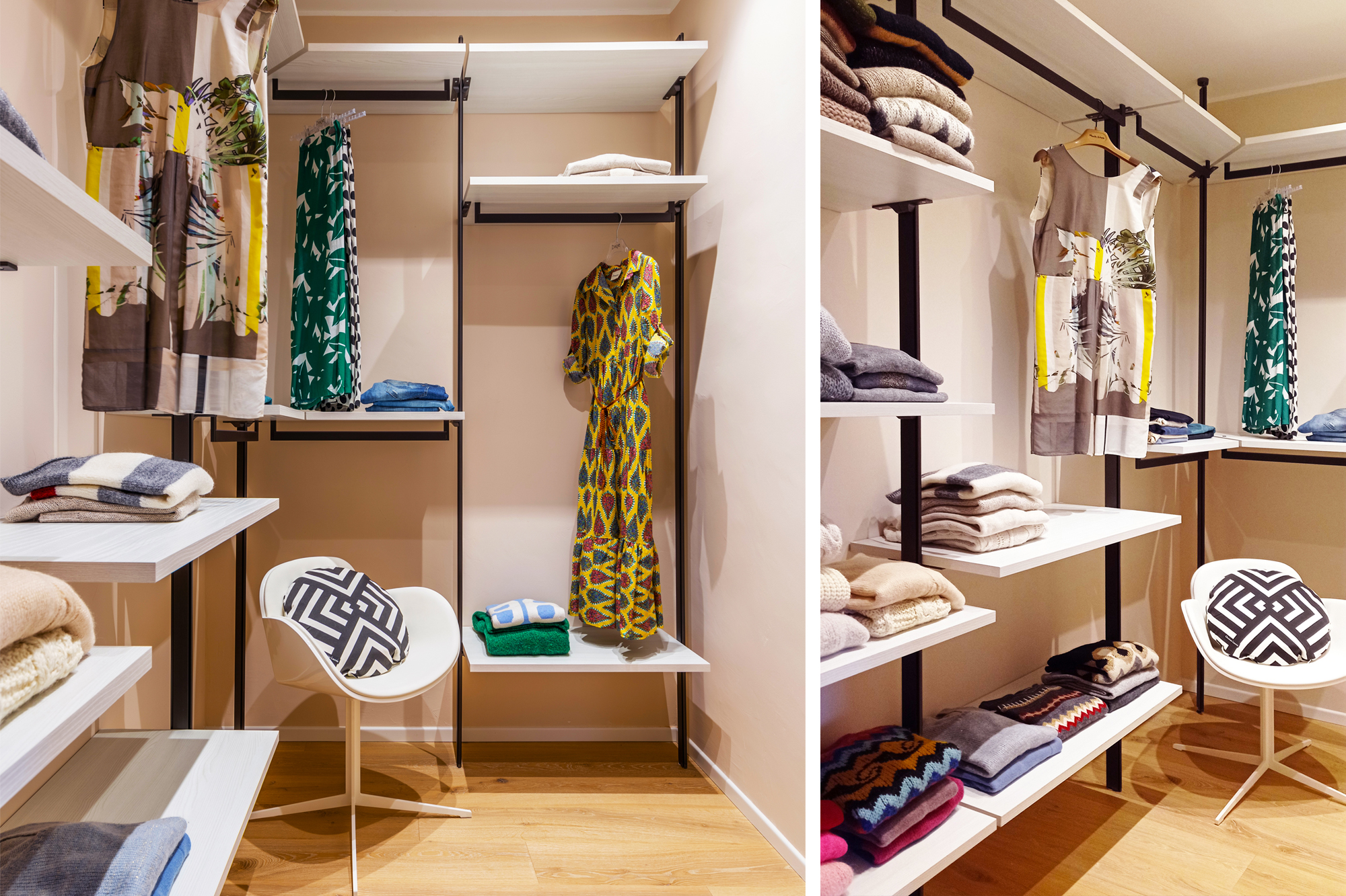 La console dell’ingresso (Amelie), le librerie di living e tutti gli arredi della camera da letto ad eccezione dell’armadio sono stati realizzati in falegnameria su disegno della Progettista.