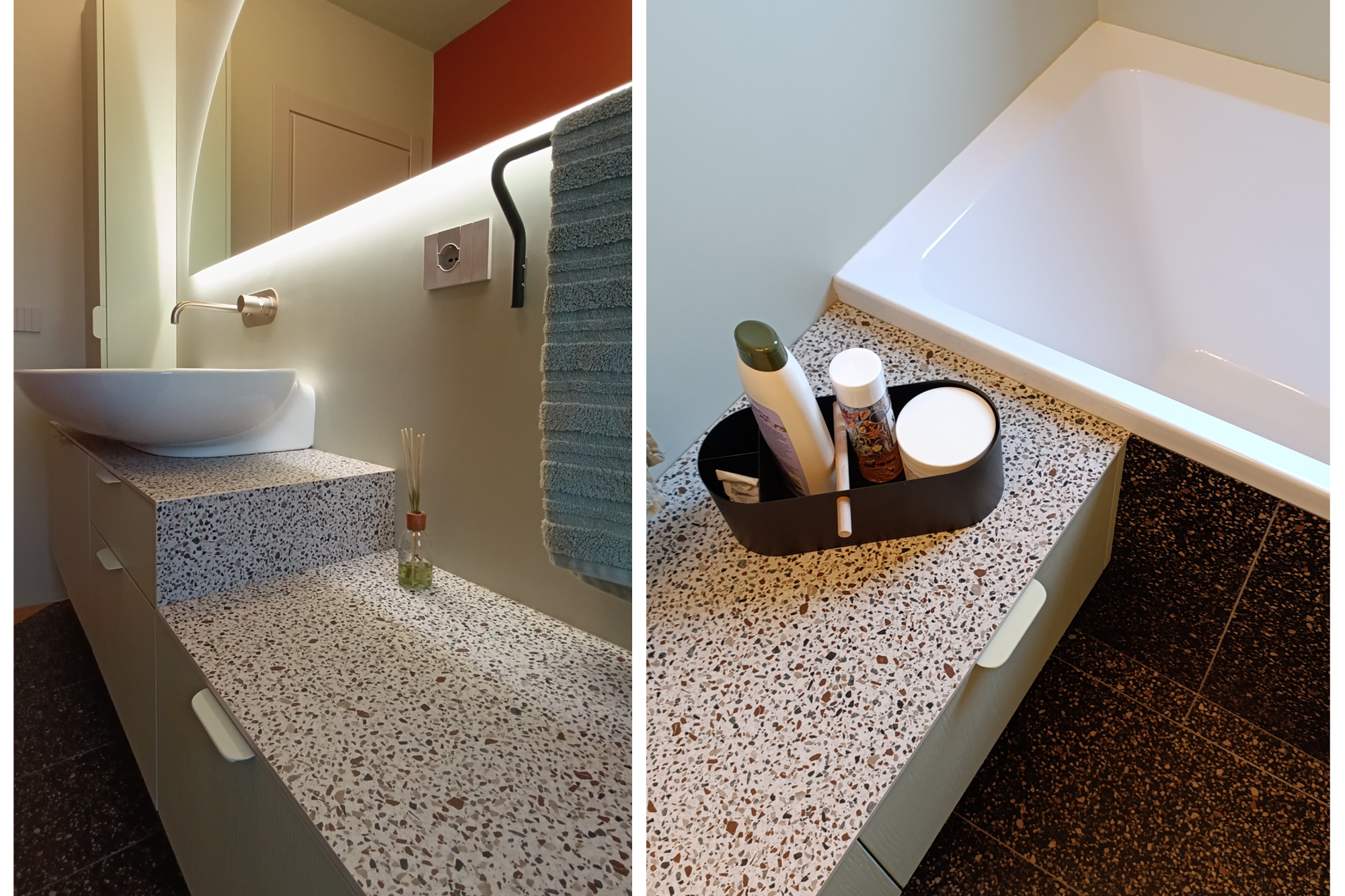 - Il mobile bagno lunghissimo con top in grès dello stesso tipo del grès utilizzato a pavimento