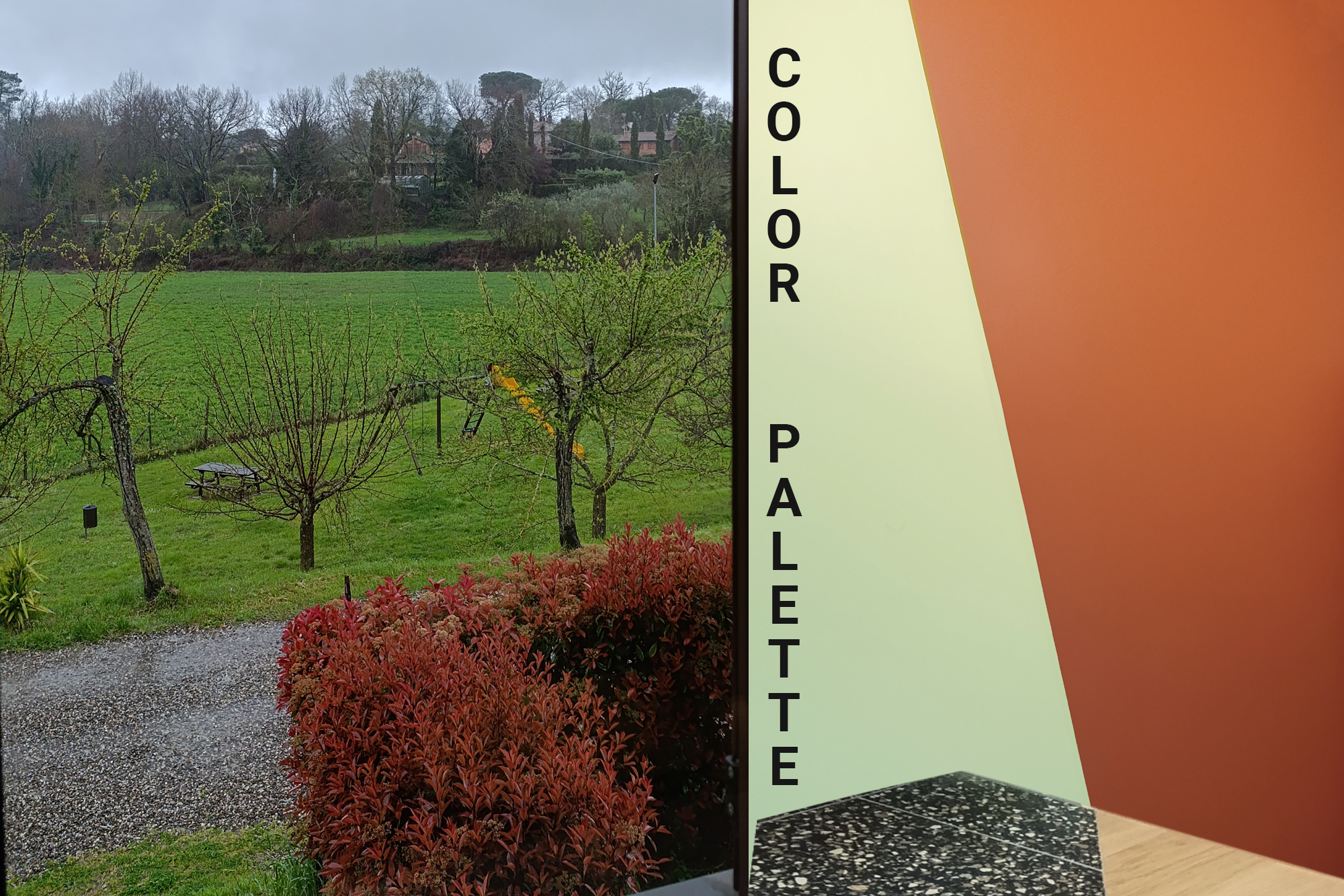 Colori utilizzati: terracotta, nero, verde, mattone, beige