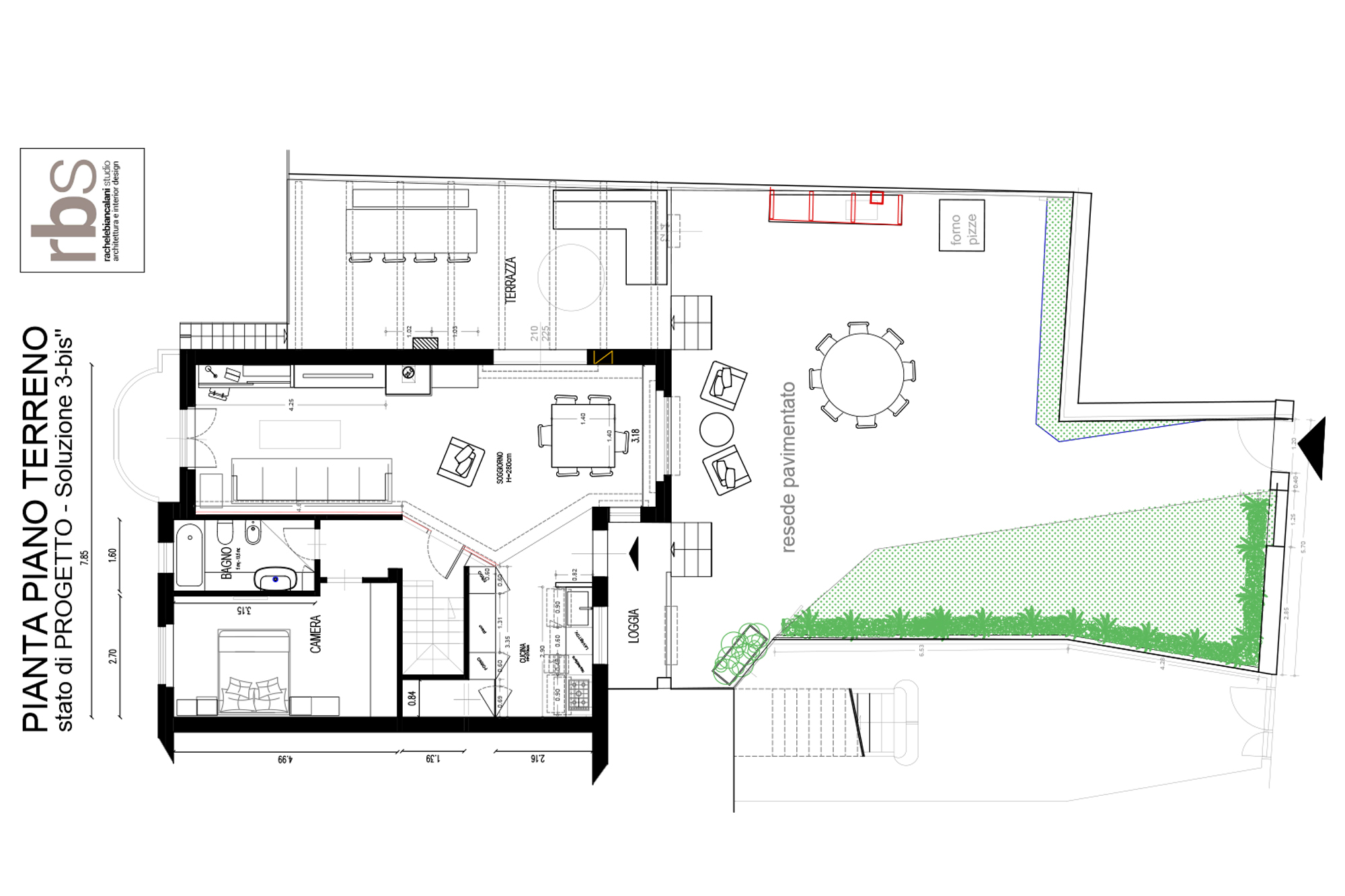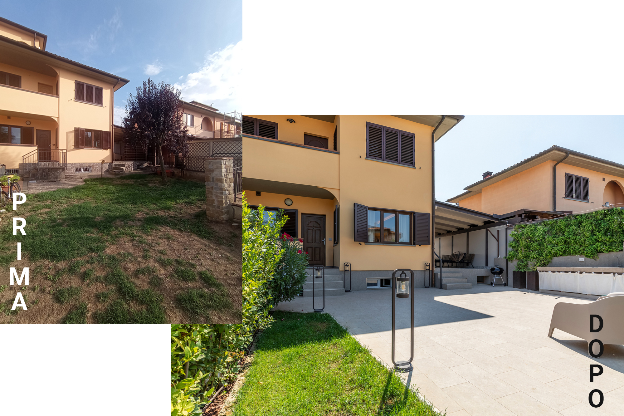 - Modificare accesso al giardino su strada, riorganizzare giardino e zona cucina outdoor