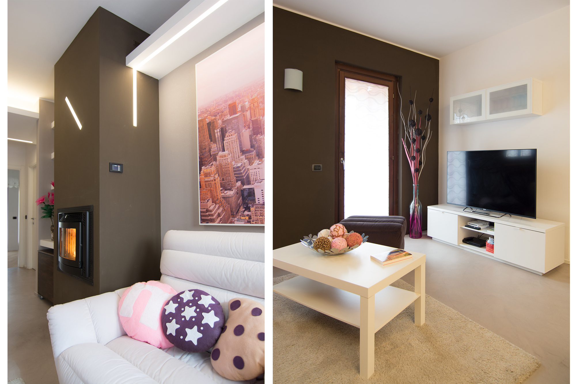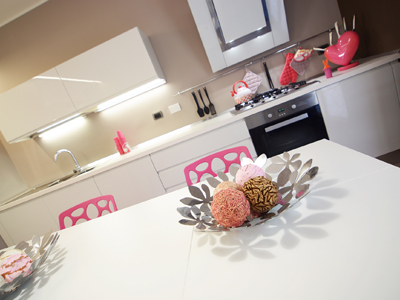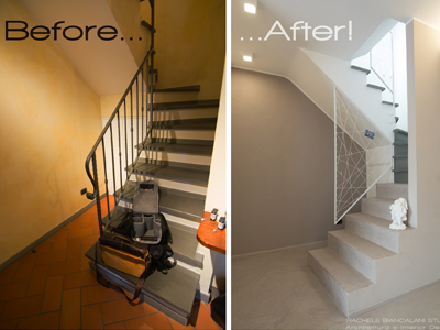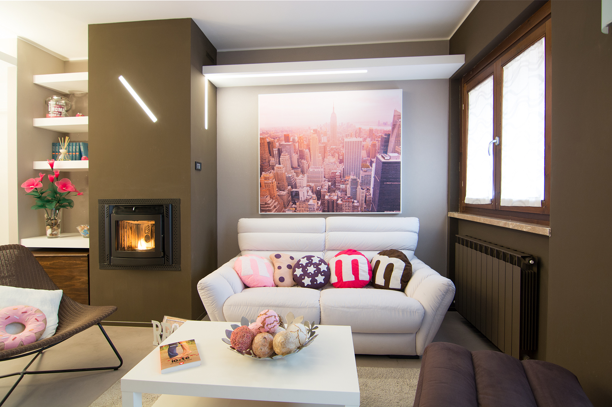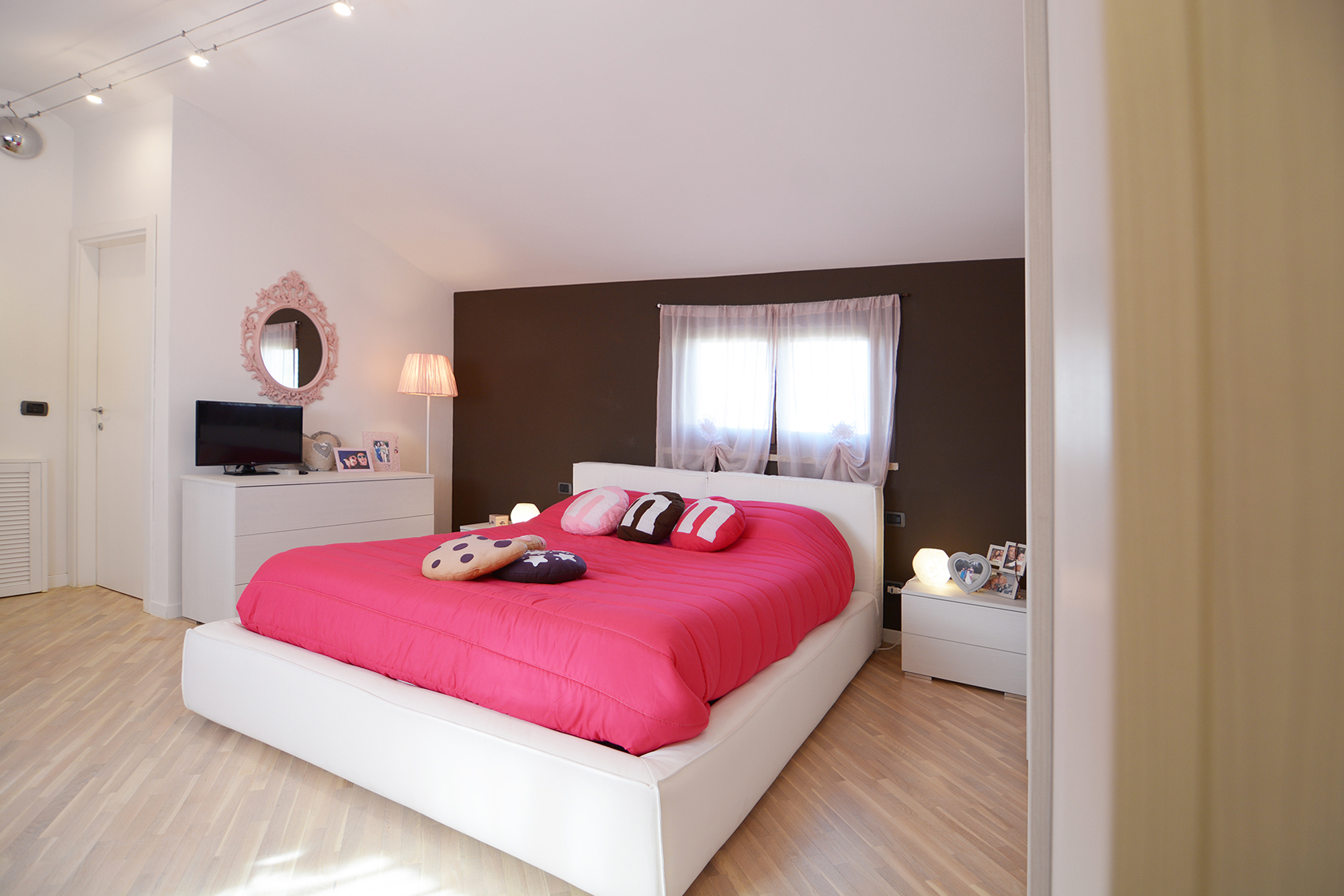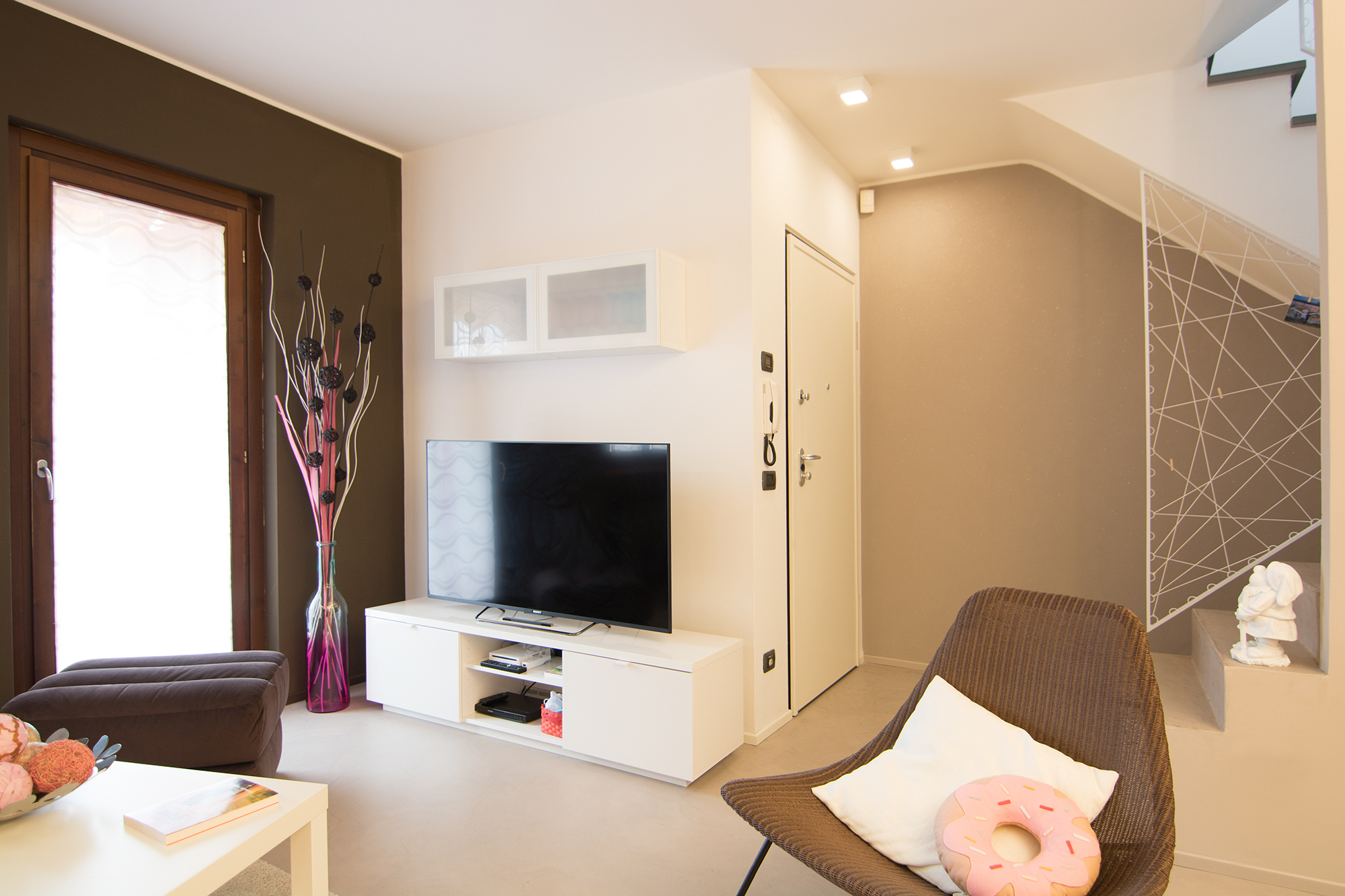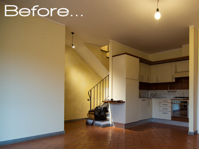 Progetto Architettonico, Pratica Edilizia, Interior Design, Direzione dei lavori e delle maestranze, Lighting Design, Home Shopping, Staging e Foto realizzati da Rachele Biancalani Studio. Questo appartamento su due livelli si presentava poco adatto alle esigenze della nostra cliente, una giovane scrittrice emergente che vive da sola e che ama ricevere gli amici. La zona giorno infatti aveva dimensioni limitatissime: in pochi mq erano condensati il cucinotto, la sala da pranzo e il soggiorno. C'erano invece tre grandi camere separate totalmente inutili per la nostra cliente. Inoltre le finiture, rustiche toscane (il cotto a pavimento, le pareti spugnate in giallo, la scala in pietra serena con corrimano in ferro battuto) non incontravano affatto i gusti della cliente giovane e amante del rosa e dello stile contemporaneo. Sebbene il budget per i lavori non fosse altissimo siamo riusciti ad ottimizzarlo investendo nelle modifiche fondamentali che potessero trasformare gli spazi: demolita la parete del cucinotto abbiamo utilizzato una delle camere per creare una grande cucina più che abitabile e lasciare lo spazio necessario per organizzare al meglio la zona living. Un gioco di velette in cartongesso delimita le zone e distribuisce tagli di luce dove necessario. Un resina (Rapidmix) in colore custom ha coperto con successo il vecchio cotto e parte della scala alla quale è stato modificato anche il parapetto sostituito da un reticolo con telaio in ferro e corda intrecciata che ci siamo divertiti a creare sul posto insieme alla cliente. La camera da letto padronale e lo studio sono entrambi caratterizzati dal colore rosa come il resto dell'appartamento. Bianco, rosa (in tutte le declinazioni) e marrone cioccolato caratterizzano tutti gli ambienti che risultano giovani e divertenti e rispecchiano a pieno la personalità di Serena!