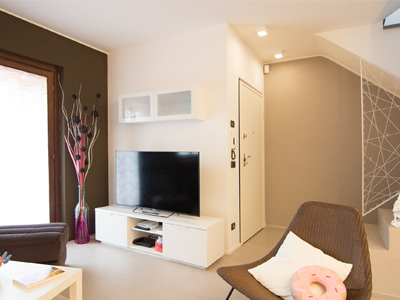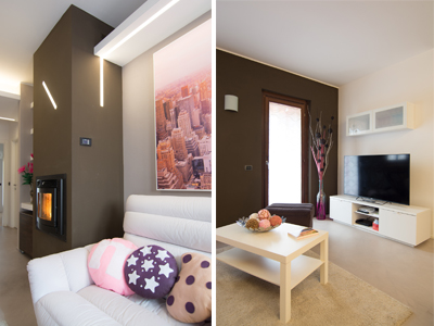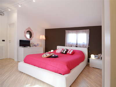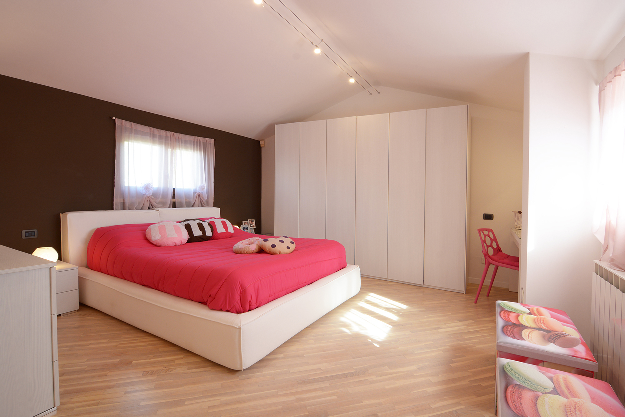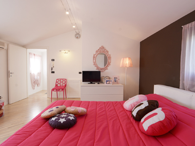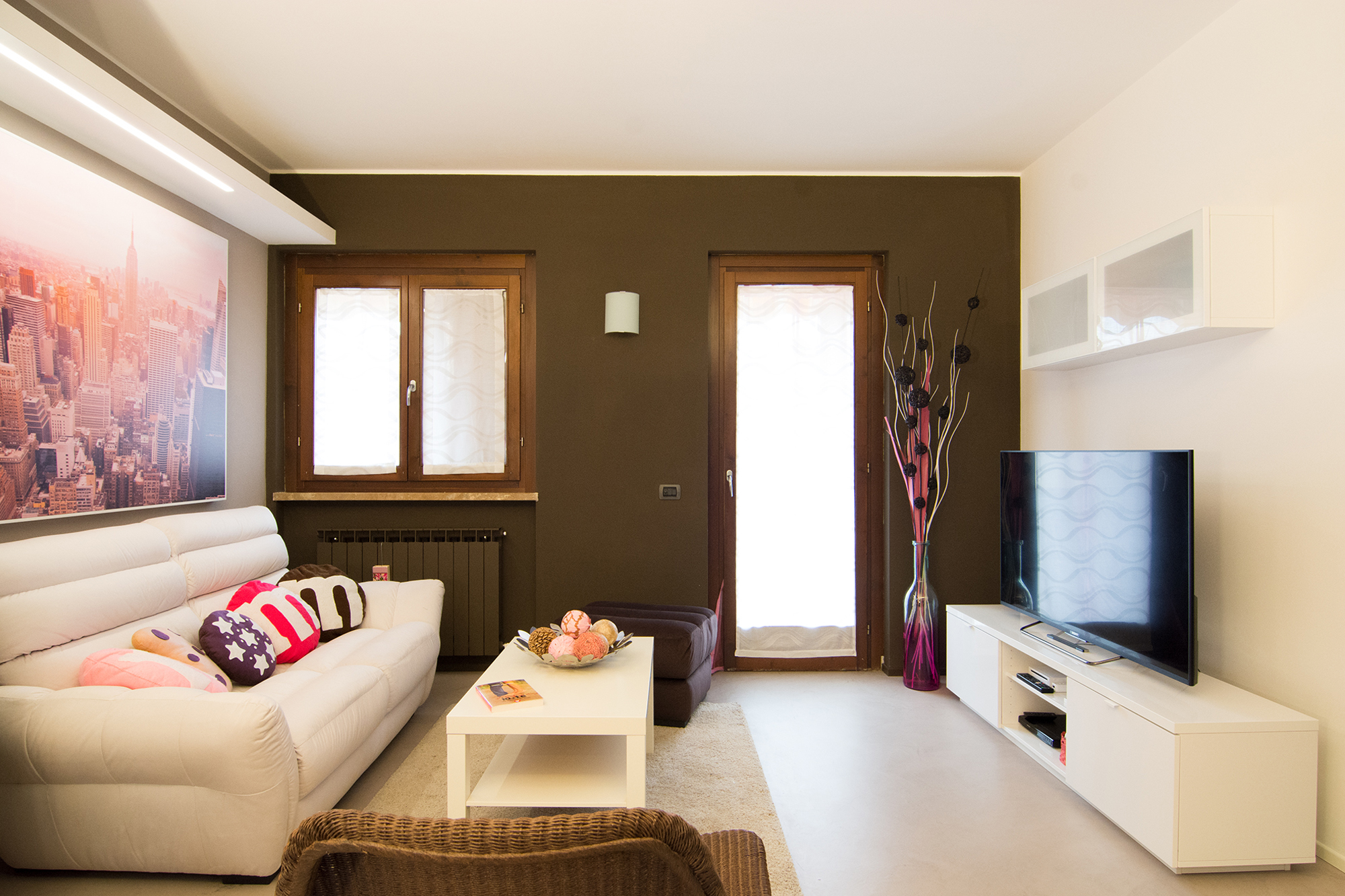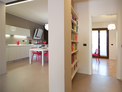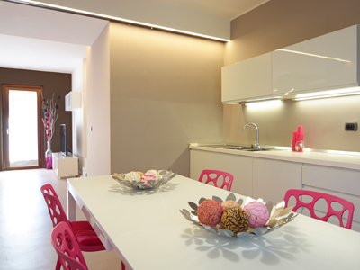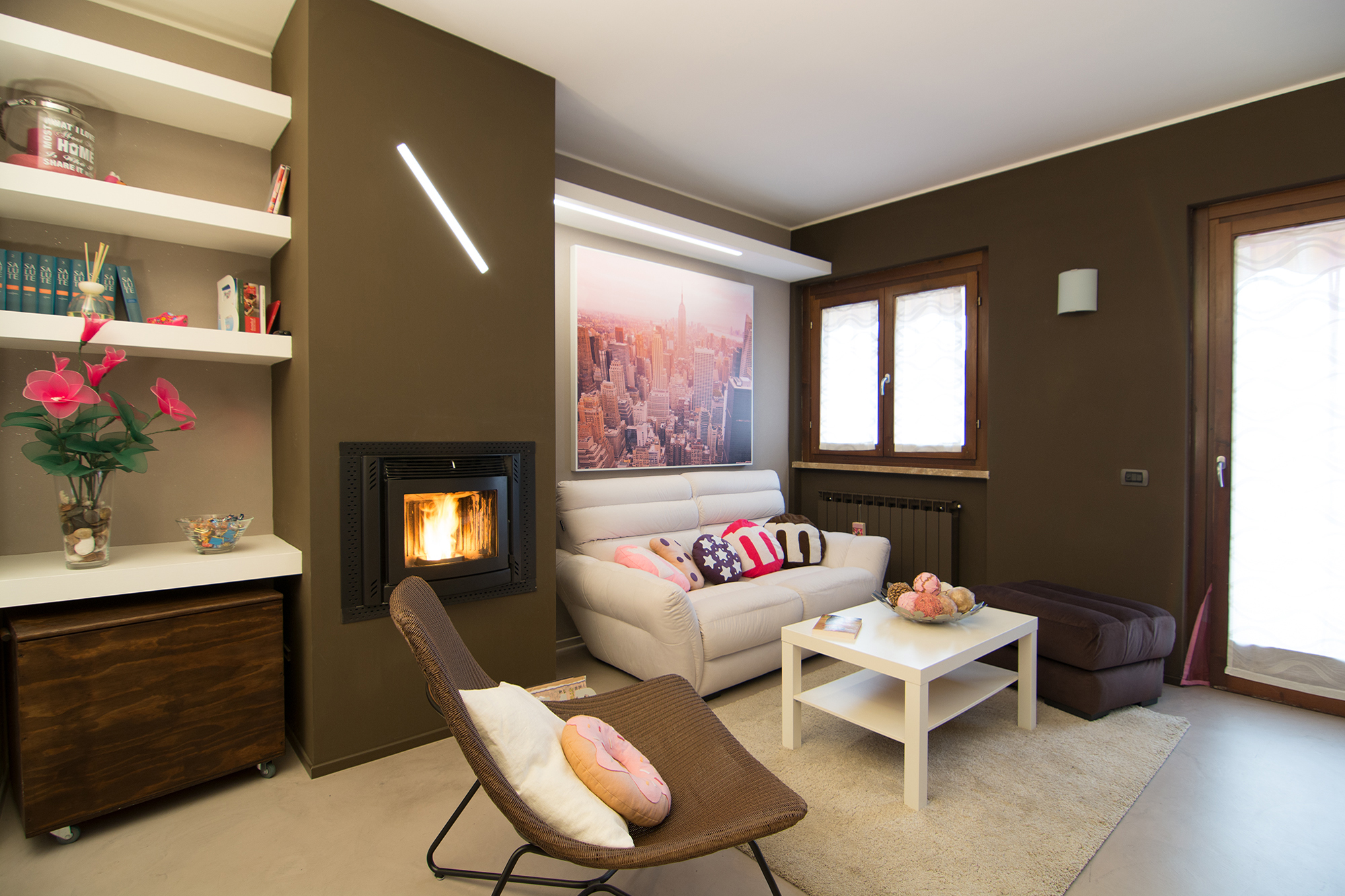 Progetto Architettonico, Pratica Edilizia, Interior Design, Direzione dei lavori e delle maestranze, Lighting Design, Home Shopping, Staging e Foto realizzati da Rachele Biancalani Studio. Questo appartamento su due livelli si presentava poco adatto alle esigenze della nostra cliente, una giovane scrittrice emergente che vive da sola e che ama ricevere gli amici. La zona giorno infatti aveva dimensioni limitatissime: in pochi mq erano condensati il cucinotto, la sala da pranzo e il soggiorno. C'erano invece tre grandi camere separate totalmente inutili per la nostra cliente. Inoltre le finiture, rustiche toscane (il cotto a pavimento, le pareti spugnate in giallo, la scala in pietra serena con corrimano in ferro battuto) non incontravano affatto i gusti della cliente giovane e amante del rosa e dello stile contemporaneo. Sebbene il budget per i lavori non fosse altissimo siamo riusciti ad ottimizzarlo investendo nelle modifiche fondamentali che potessero trasformare gli spazi: demolita la parete del cucinotto abbiamo utilizzato una delle camere per creare una grande cucina più che abitabile e lasciare lo spazio necessario per organizzare al meglio la zona living. Un gioco di velette in cartongesso delimita le zone e distribuisce tagli di luce dove necessario. Un resina (Rapidmix) in colore custom ha coperto con successo il vecchio cotto e parte della scala alla quale è stato modificato anche il parapetto sostituito da un reticolo con telaio in ferro e corda intrecciata che ci siamo divertiti a creare sul posto insieme alla cliente. La camera da letto padronale e lo studio sono entrambi caratterizzati dal colore rosa come il resto dell'appartamento. Bianco, rosa (in tutte le declinazioni) e marrone cioccolato caratterizzano tutti gli ambienti che risultano giovani e divertenti e rispecchiano a pieno la personalità di Serena!