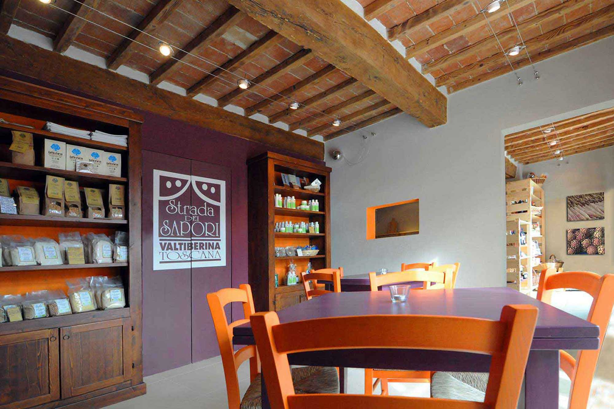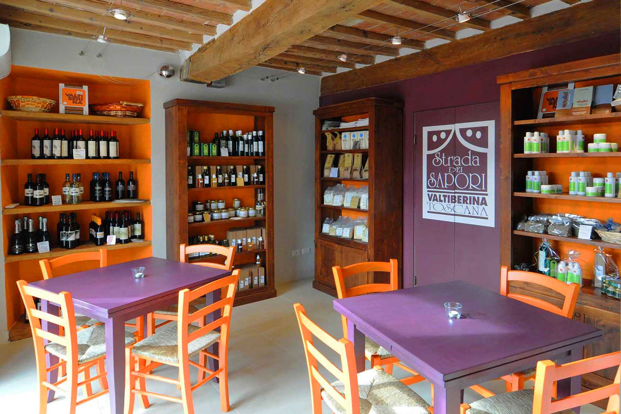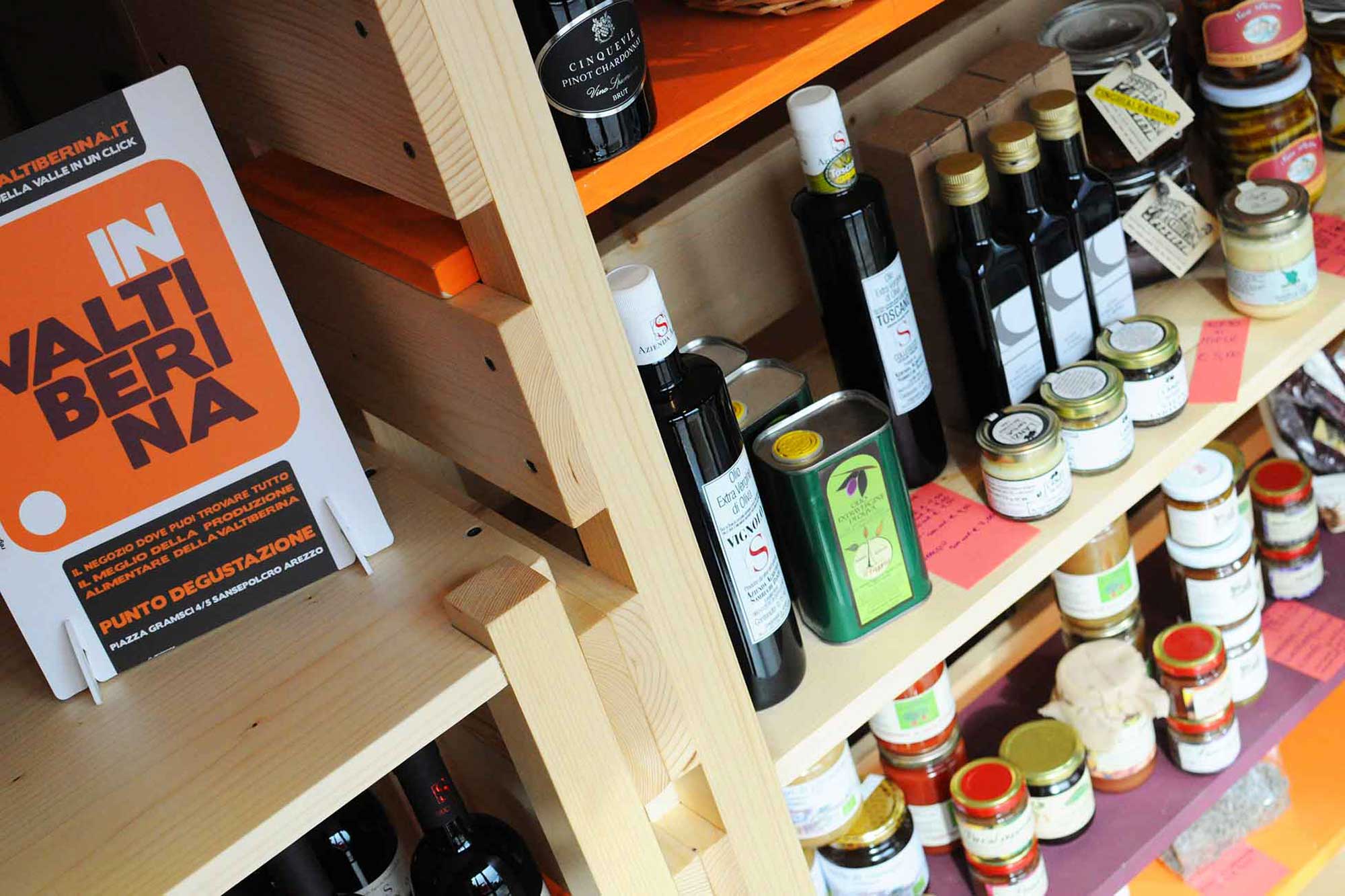 Il locale “InValtiberina” si colloca in un edificio storico nella centro di Sansepolcro ed ospita un'attività molto legata al territorio e alle campagne circostanti: al suo interno infatti è possibile acquistare e degustare i prodotti tipici realizzati dalle Aziende Agricole della Strada dei Sapori della Valtiberina Toscana.