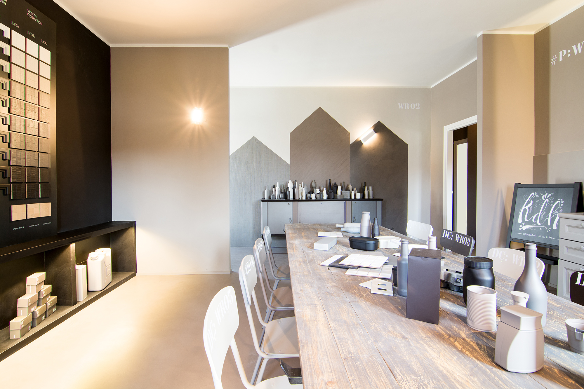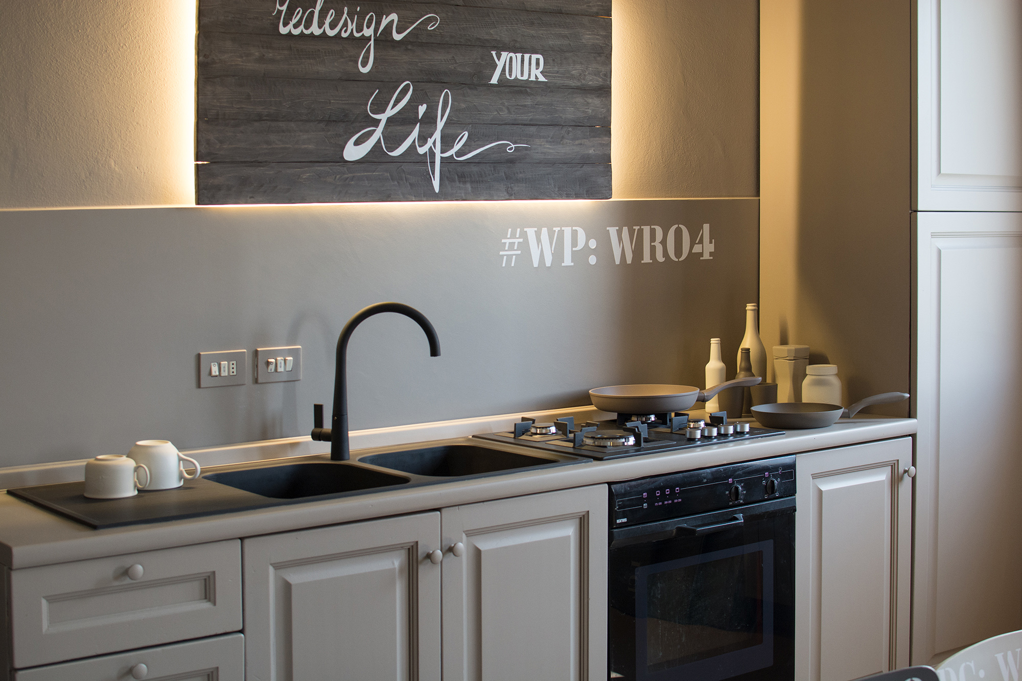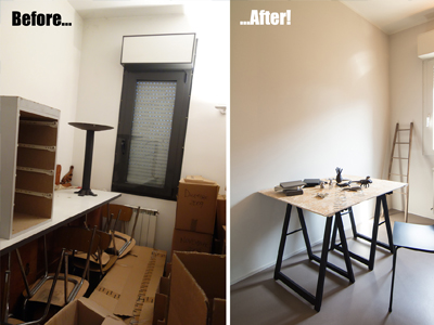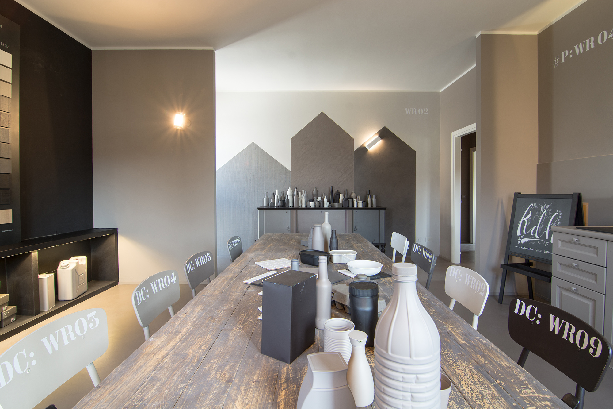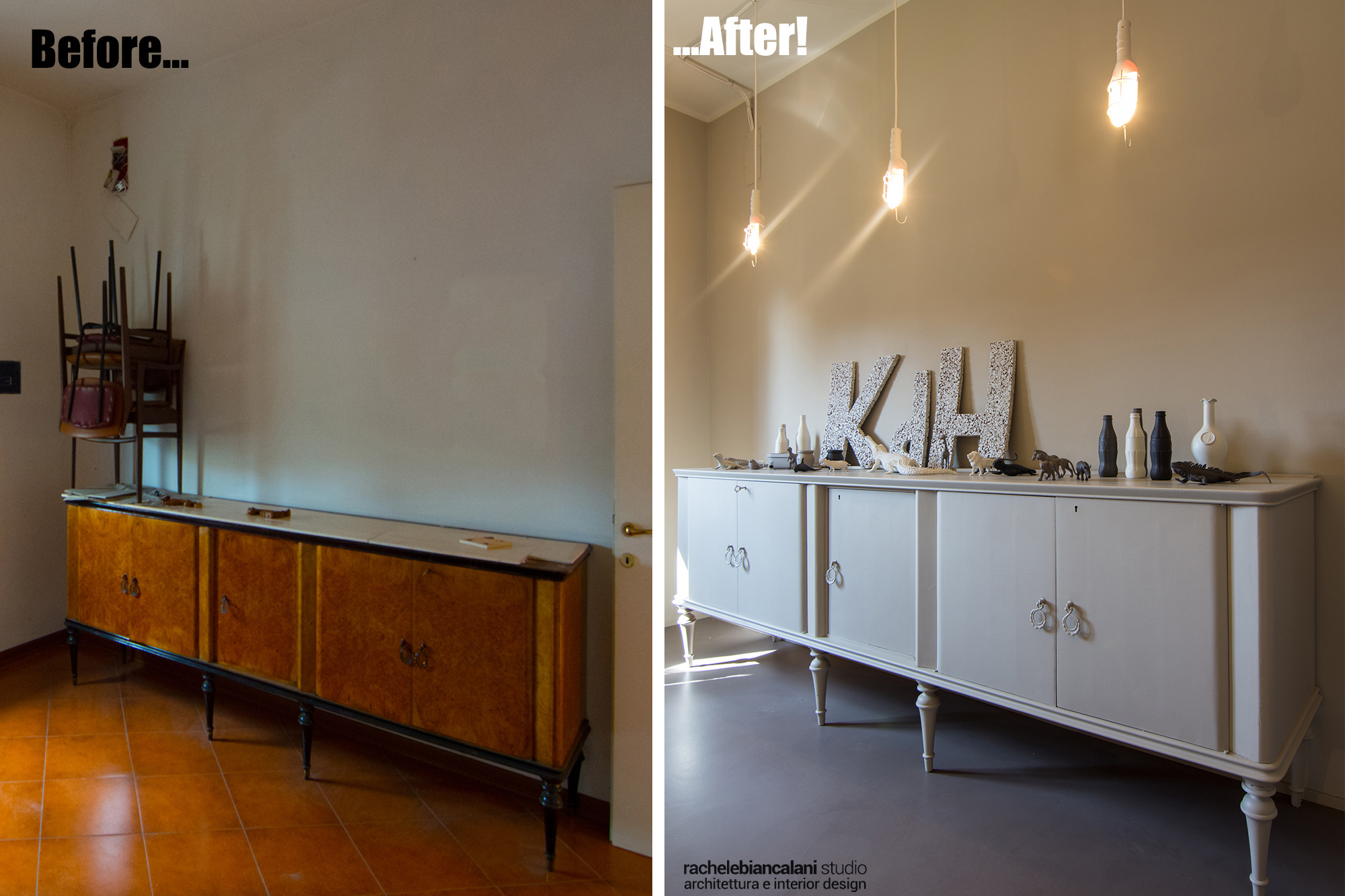 Intervento di ordinaria manutenzione per questo appartamento-showroom che abbiamo trasformato da terribile a terribilmente bello. La situazione prima dei lavori non era molto gradevole: vecchie piastrelle rosso mattone su un pavimento in dei punti imbarcato, gli infissi anni '80 neri con i cassonetti degli avvolgibili neri e bianchi e un sacco di altri dettagli sgradevoli. Il nostro Restyling "purista" ci ha visto utilizzare SOLO ED ESCLUSIVAMENTE prodotti della serie Kerakoll Design: dalle resine, agli smalti passando ovviamente per i decorativi e le pitture murali. Anche i vecchi arredi sono stati resi irresistibili dai prodotti Kerakoll che sono stati utilizzati proprio su tutto: nessuno può resistere al fascino delle bottigliette, dei contenitori, dei soprammobili dipinti con tutta la gamma delle tonalità KD. Giochi di luce diretta e indiretta ove possibile sottolineano le texture materiche di "Patina" e "Wallcrete". [interior design, lighting design, direzione dei lavori e foto a cura del nostro Studio]
