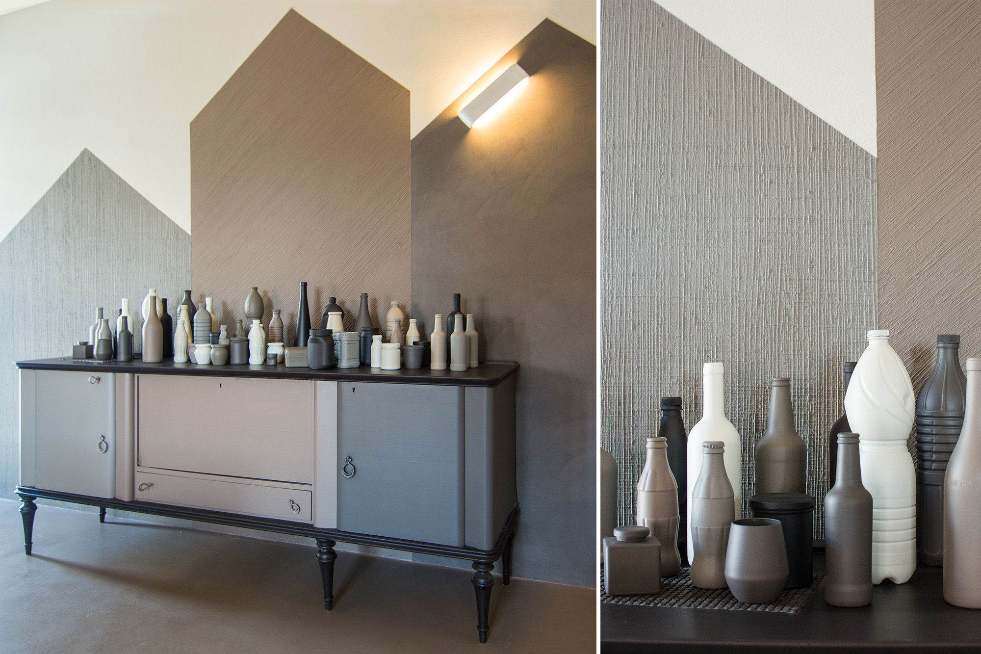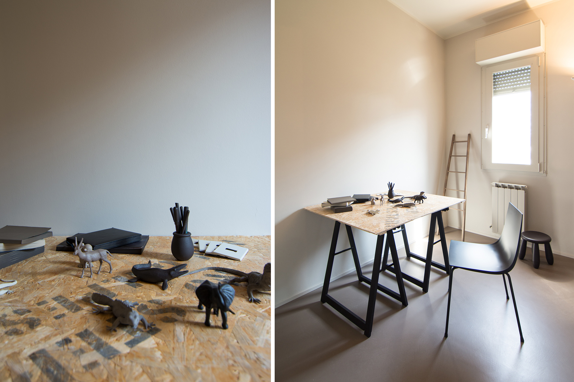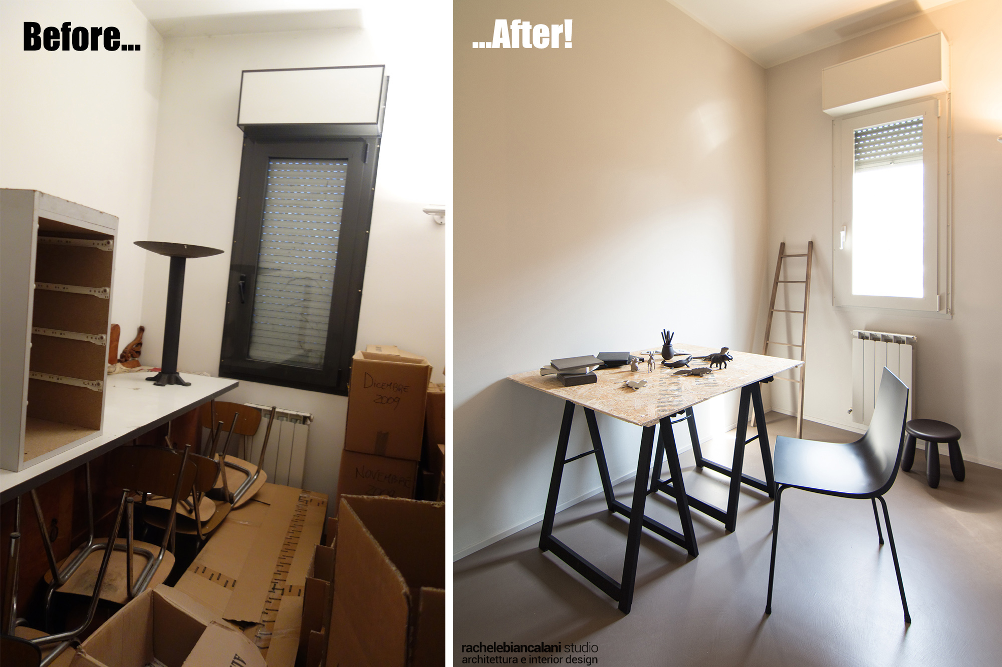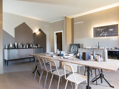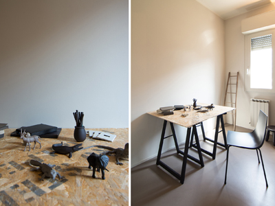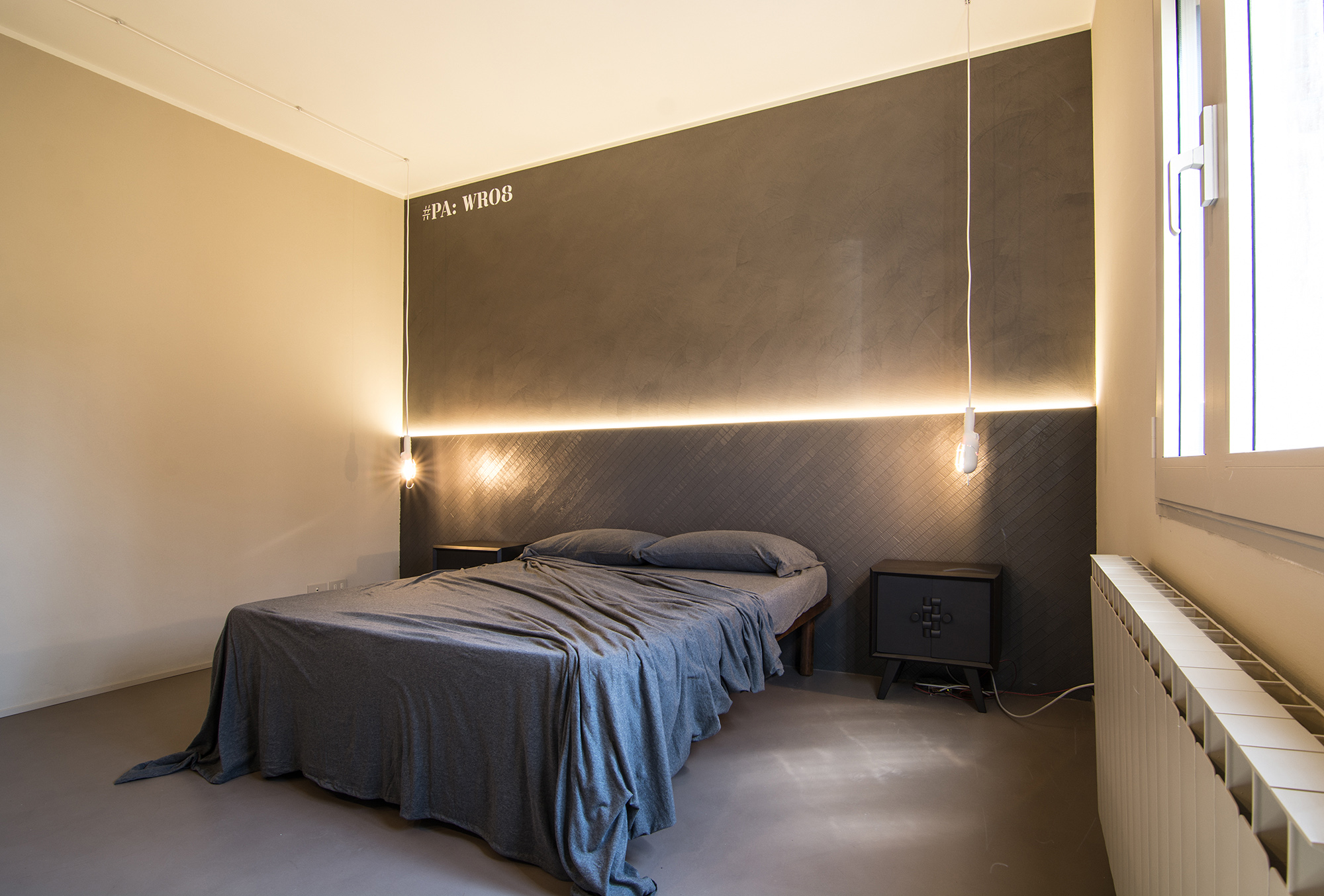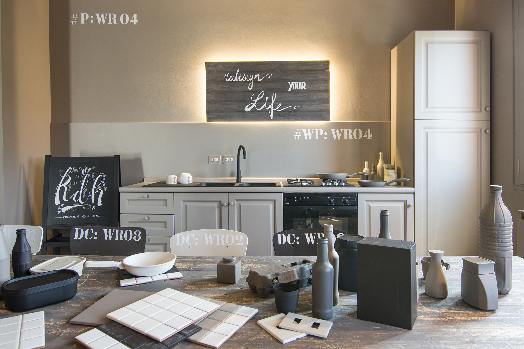 Intervento di ordinaria manutenzione per questo appartamento-showroom che abbiamo trasformato da terribile a terribilmente bello. La situazione prima dei lavori non era molto gradevole: vecchie piastrelle rosso mattone su un pavimento in dei punti imbarcato, gli infissi anni '80 neri con i cassonetti degli avvolgibili neri e bianchi e un sacco di altri dettagli sgradevoli. Il nostro Restyling "purista" ci ha visto utilizzare SOLO ED ESCLUSIVAMENTE prodotti della serie Kerakoll Design: dalle resine, agli smalti passando ovviamente per i decorativi e le pitture murali. Anche i vecchi arredi sono stati resi irresistibili dai prodotti Kerakoll che sono stati utilizzati proprio su tutto: nessuno può resistere al fascino delle bottigliette, dei contenitori, dei soprammobili dipinti con tutta la gamma delle tonalità KD. Giochi di luce diretta e indiretta ove possibile sottolineano le texture materiche di "Patina" e "Wallcrete". [interior design, lighting design, direzione dei lavori e foto a cura del nostro Studio]