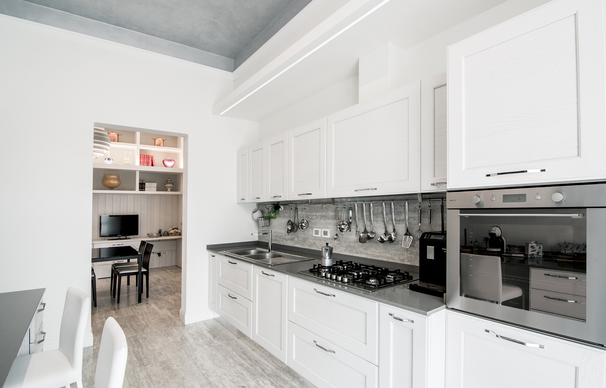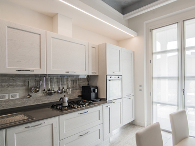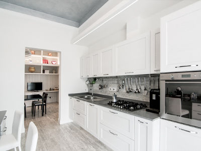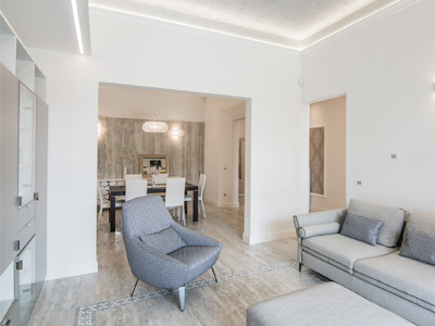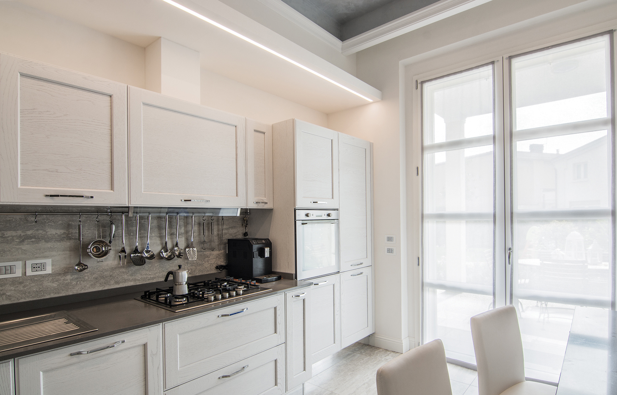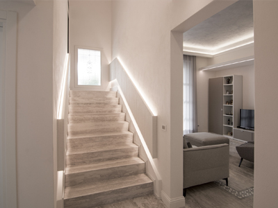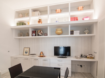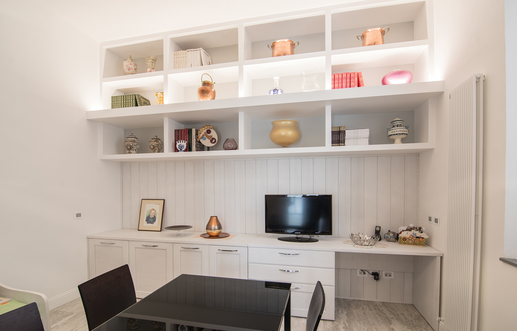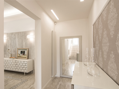 La Committenza desiderava ambienti dallo stile elegante e allo stesso tempo funzionali, ecco perchè la Progettista ha rivoluzionato completamente la planimetria del piano terra (che in precedenza ospitava un centro estetico!) ampliando alcune aperture sia interne che in facciata, che hanno reso gli ambienti comunicanti lasciando filtrare la luce naturale dalle enormi finestre che sono state realizzate su progetto.