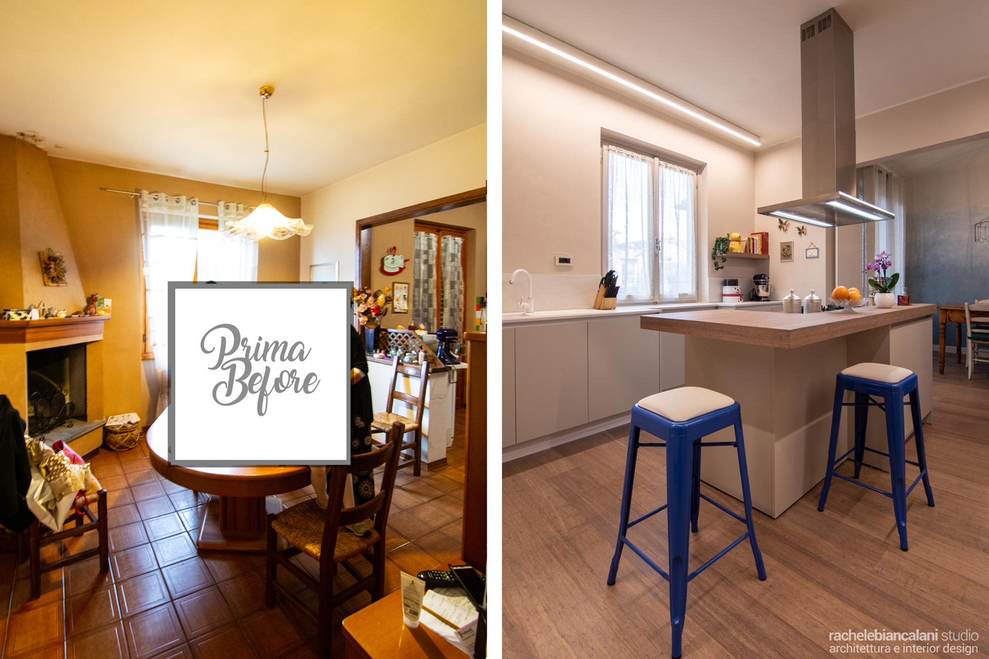 Un cambiamento considerevole per questa abitazione: una ristrutturazione completa che ha “svecchiato” completamente gli ambienti con pochissimi interventi strutturali, nuove finiture e molte mani di vernice.