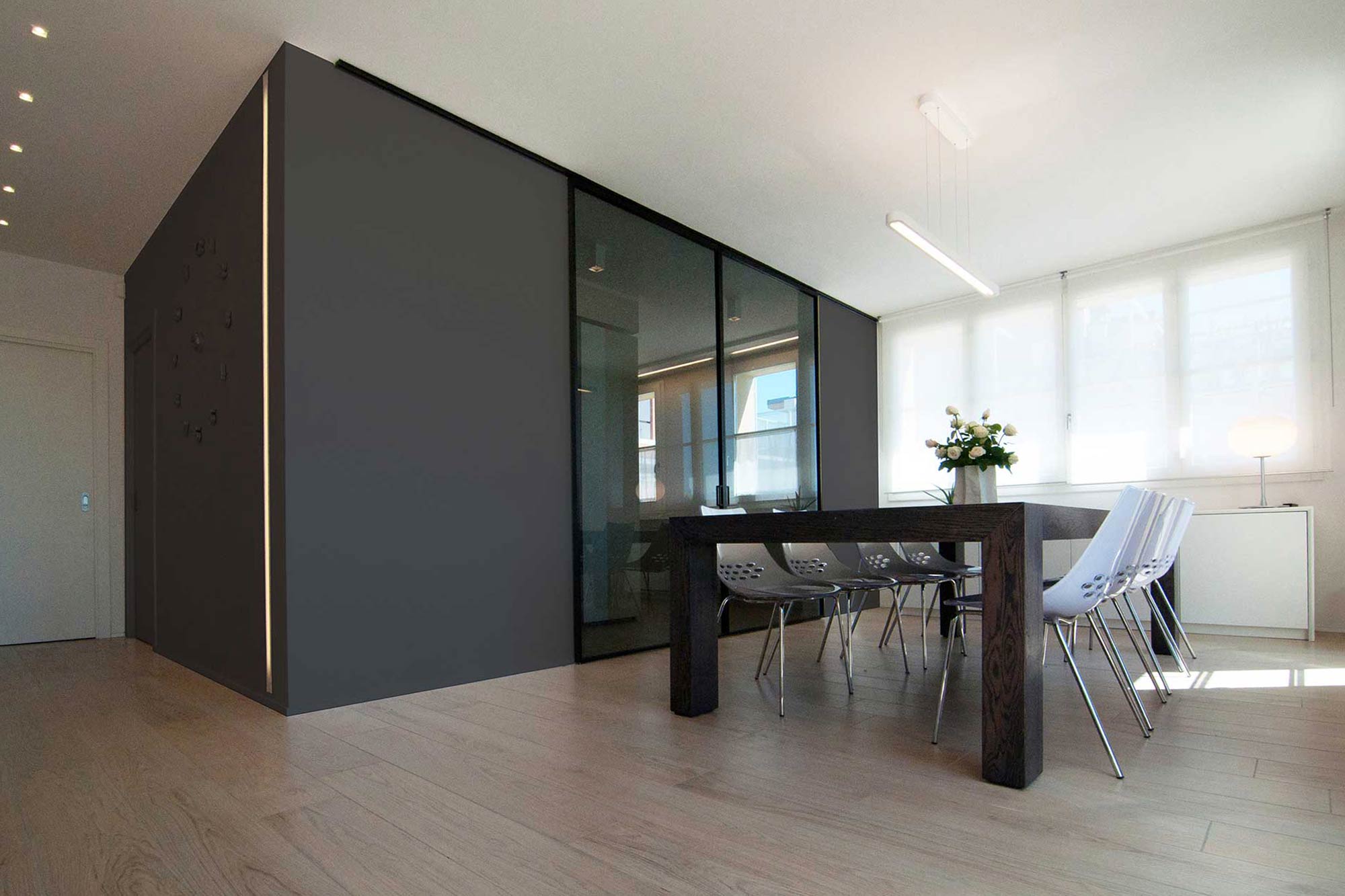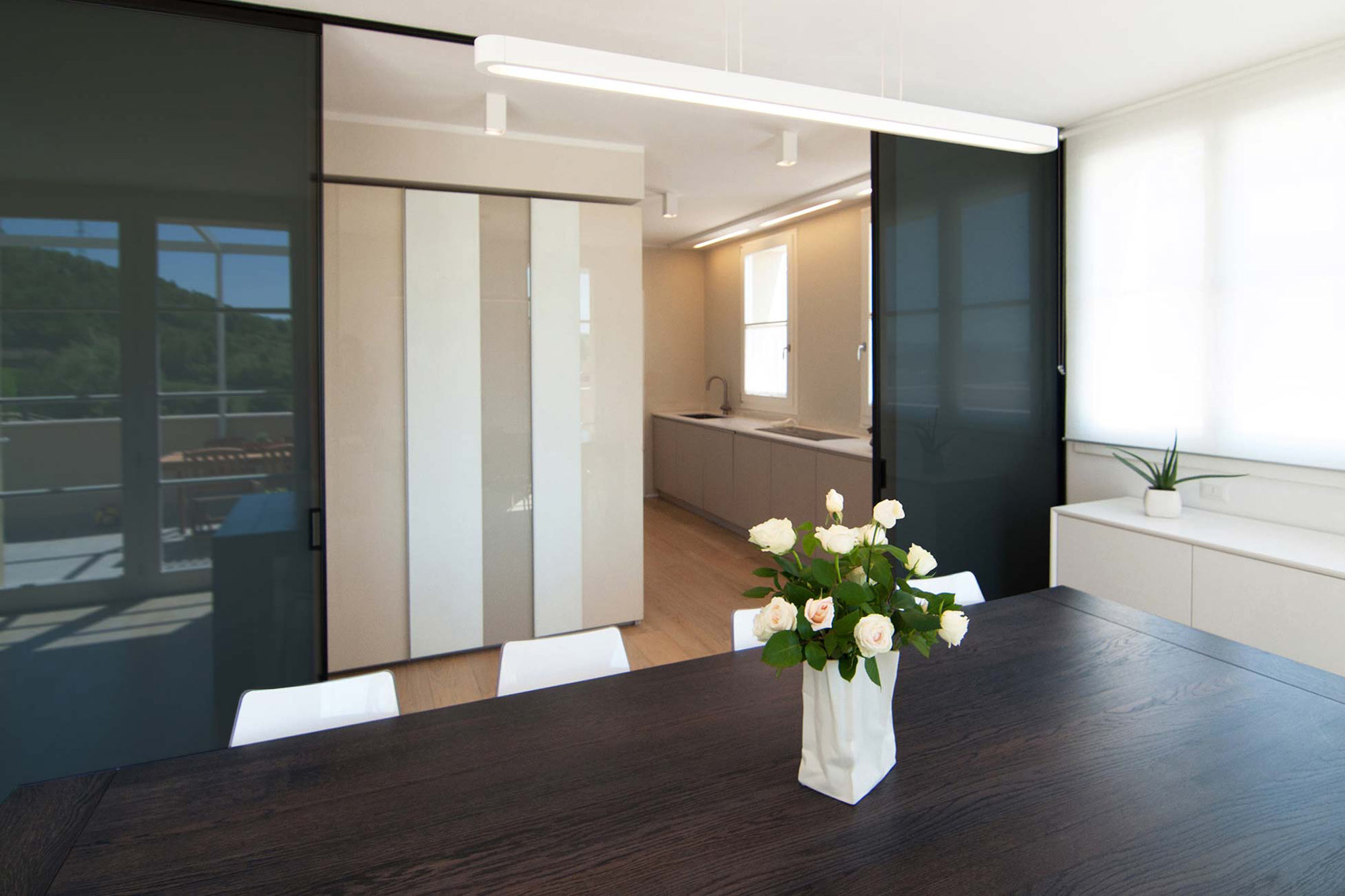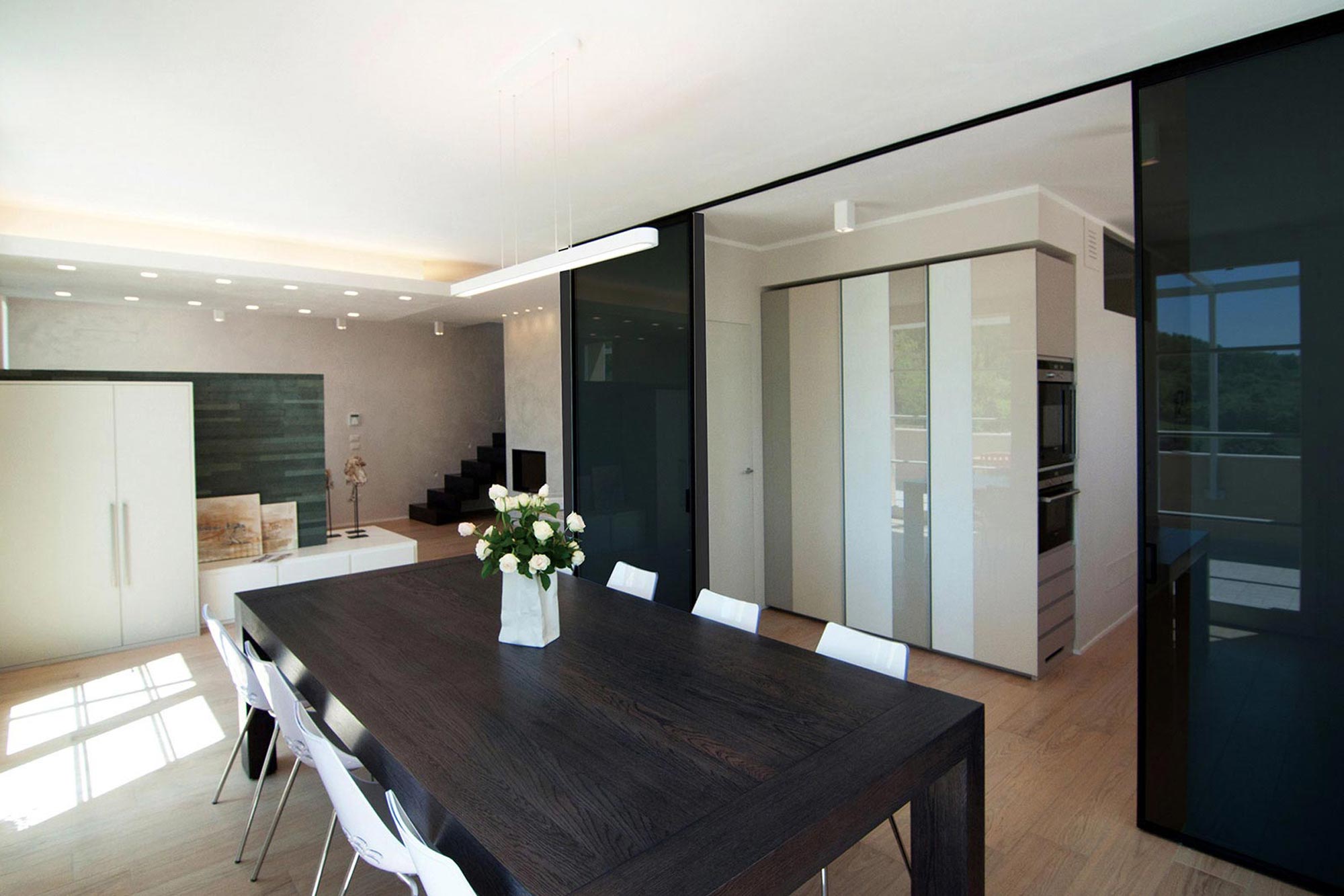 Questo lavoro del nostro studio, che abbiamo chiamato “Villa Minimal” per ovvie ragioni è in STILE MINIMAL CHIC con un’attenzione particolare alla funzionalità. Pulizia delle forme, razionalità e colori neutri caratterizzano gli spazi.