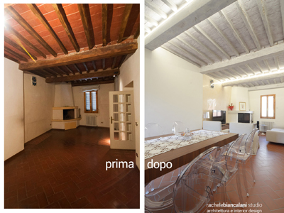 Una giovane coppia e un vecchio terratetto nel centro storico di Figline Valdarno e un piccolo budget. L’immobile era ben tenuto ma ristrutturato l’ultima volta negli anni ‘80 inoltre era abitato da un single il cui stile di vita non era compatibile con le esigenze dei miei giovani clienti. E men che meno i gusti estetici. La ristrutturazione che siamo andati ad effettuare è un vero e proprio ECORECUPERO perché si basa sul recupero dell’esistente mantenedo quanto più possibile ciò che di buono era presente perché fare economia molto spesso significa sostenibilità sia per l’ambiente che per il portafoglio.
