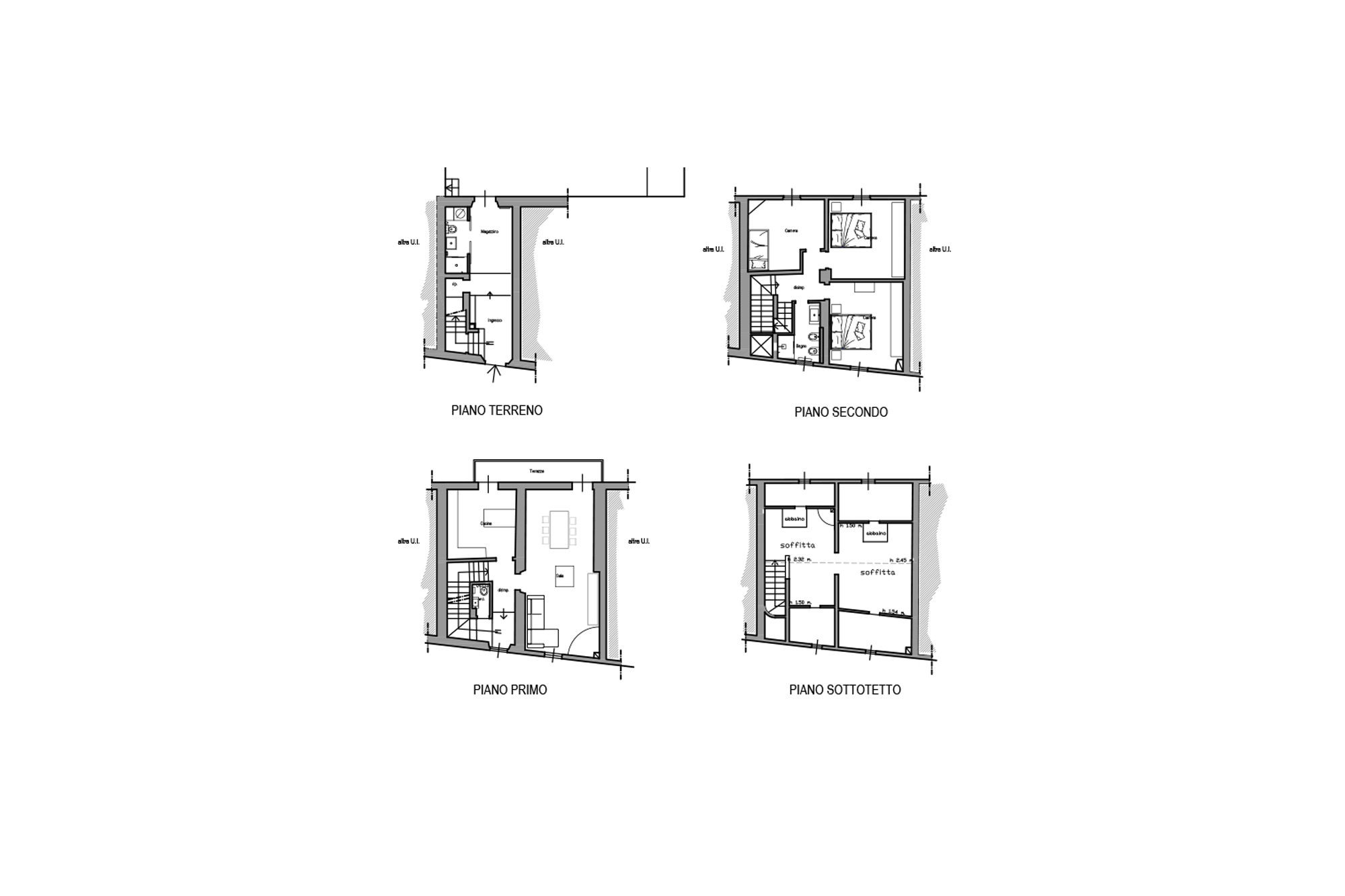 Il terratetto aveva le finiture tradizionali dell’edilizia del centro Italia: solai con travi in legno mordenzato scuro e pianelle in cotto rosso; i pavimenti in cotto rosso erano in dei punti talmente scuri da sembrare neri; le pareti di un patetico giallino e le porte lo stesso.