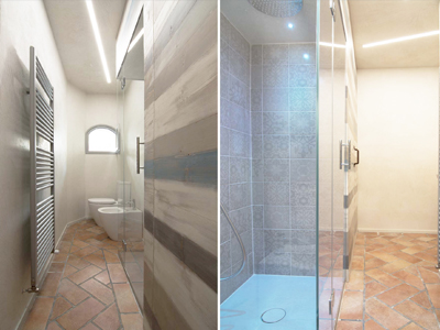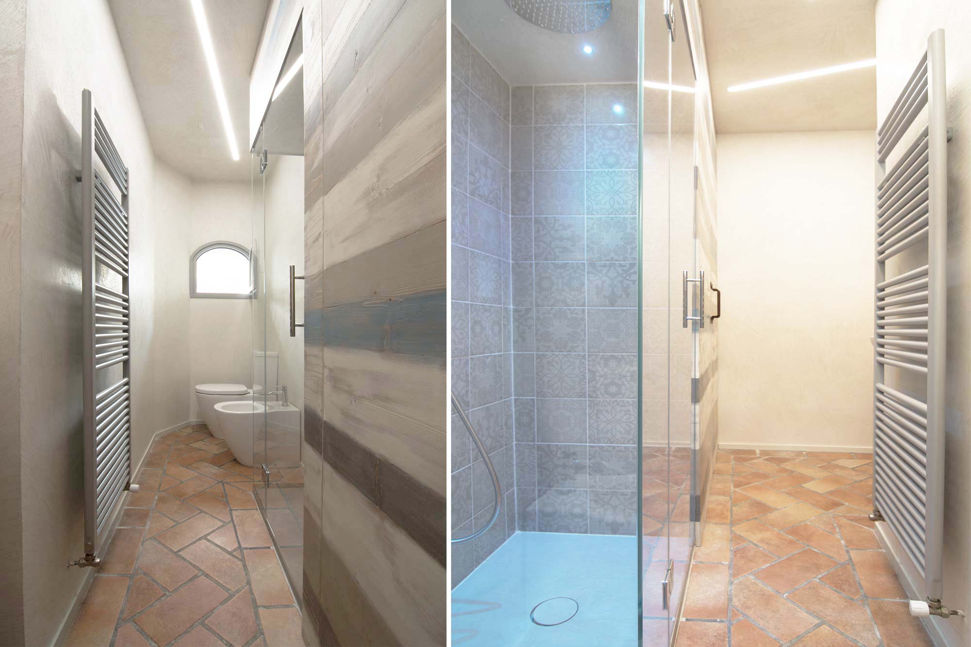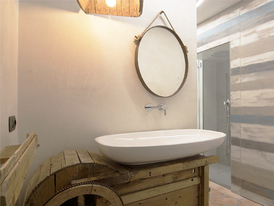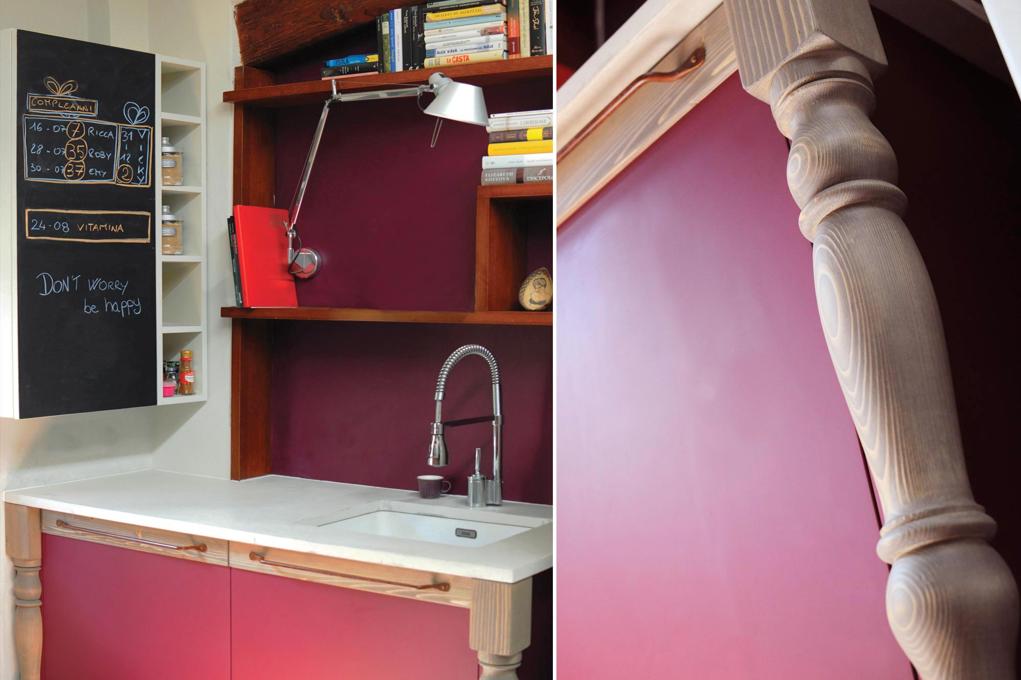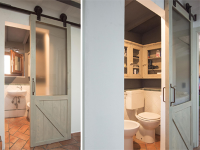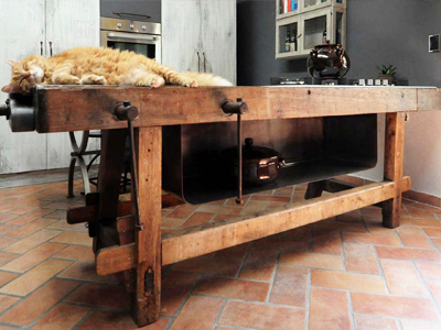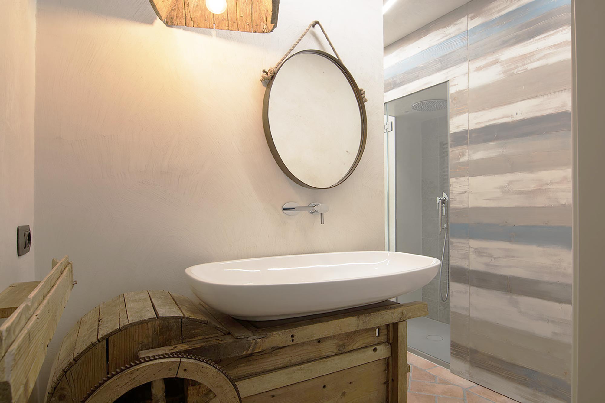 Legno, ferro e materiali di recupero sono stati il punto di partenza per il mood progettuale. Il piano dei fuichi è un vecchio tavolo da falegname riadattato, il mobile del bagno invece è stato realizzato modificando un vecchio attrezzo agricolo. Lo stesso dicasi per l'originale lampada del bagno. Progetto architettonico, interior design, lighting design, concept, home shopping e direzione del cantiere e direzione artistica dei lavori a cura di Rachele Biancalani Studio - Progetti e immagini coperti da Copyright All Rights reserved copyright 2013 © Rachele Biancalani - Foto Thomas Harris Photographer