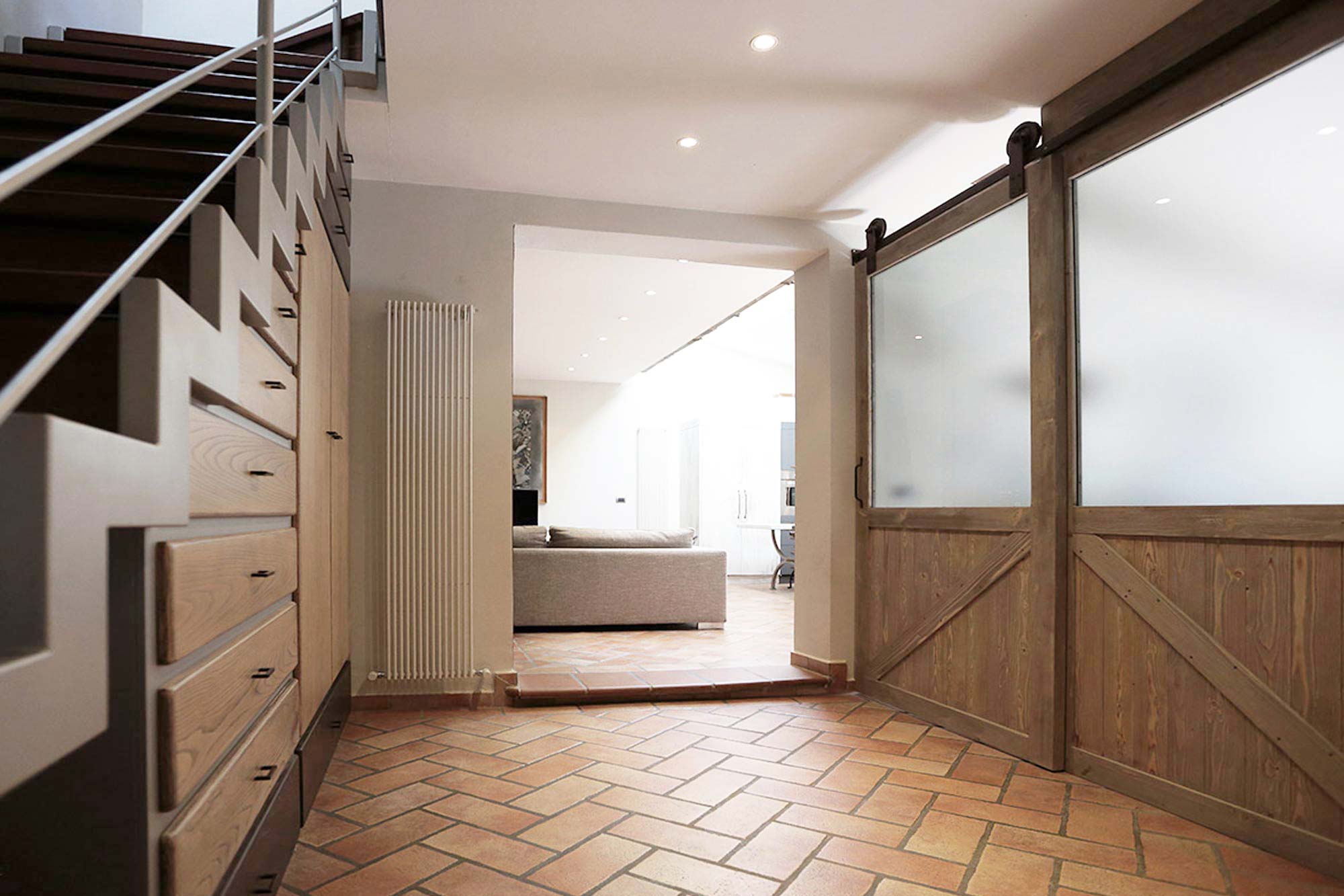 Stile Industriale e vintage per questo "loft" in pieno centro storico. Il nostro studio si è occupato di questo intervento che ha donato nuova vita ad un appartamento del centro storico di un paese toscano nei pressi di Firenze ed ha seguito la Committenza, una giovane coppia con due figli piccoli, fino al disegno di arredi e complementi su misura passando per la direzione dei lavori.